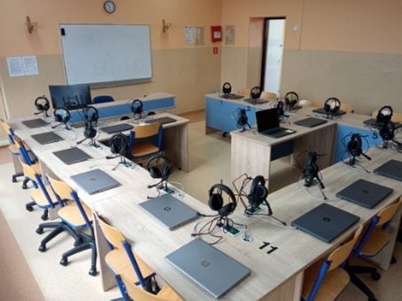 W związku z tym stworzyliśmy w naszej szkole nowoczesną pracownię informatyczno-językową. Sala jest imponująca, wyposażona w najnowocześniejszy sprzęt komputerowy, audiowizualny oraz nowe meble. Podczas lekcji informatyki i języków obcych rozwijane będą kompetencje kluczowe uczniów – kompetencje cyfrowe oraz w zakresie wielojęzyczności.