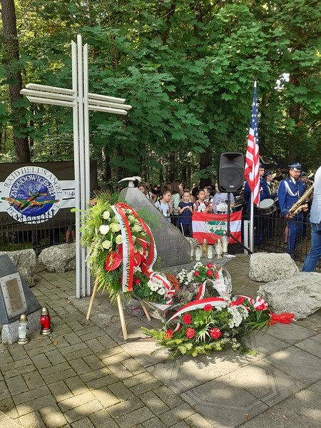 Na mecie rajdu rozpoczęły się oficjalne uroczystości z udziałem przybyłych gości. Punktualnie o 12:00 Orkiestra Dęta z Zygodowic odegrała hymny narodowe Stanów Zjednoczonych Ameryki i Polski. Po przemowach, przybyli goście złożyli pod obeliskiem okolicznościowe wiązanki kwiatów. Dzięki udziałowi w rajdzie nasi uczniowie mogli poznać historię swojego regionu.