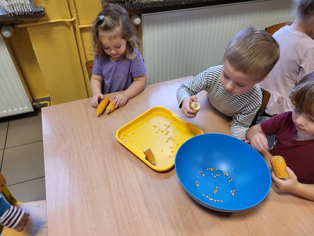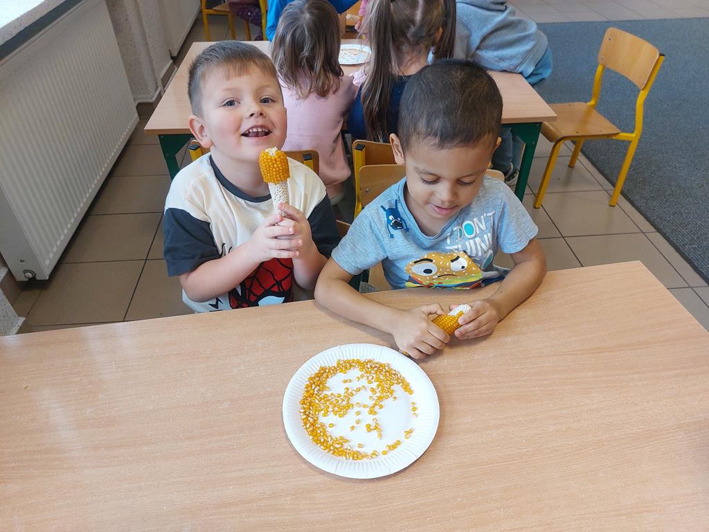 Nasze przedszkole w zeszłym roku wzięło udział w ogólnopolskim projekcie „Popcorn prosto z ogródka. Zabawa, okazała się nie nauką o przyrodzie, a praktycznym zaangażowaniem się w przyrodę. To mała, ale wielka różnica! Dzieci siały, podlewały i pielęgnowały zbiory. Niekonwencjonalny, innowacyjny projekt stanowił doskonały przerywnik w codzienności dla przedszkolaków. Udało się uzyskać swoją rzodkiewkę oraz kukurydzę. Na koniec z zebranej kukurydzy, został uprażony popcorn. Nic tak nie cieszy, jak osiągnięcie wartościowego celu. Hodowanie własnych roślin i umiejętność ich przetworzenia w pyszny posiłek dodaje uczestnikom zabawy mocy!