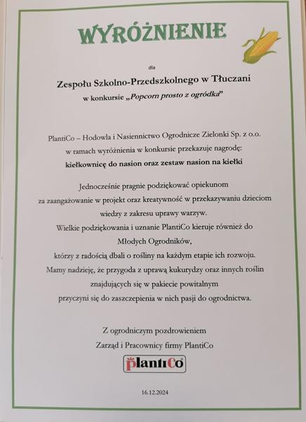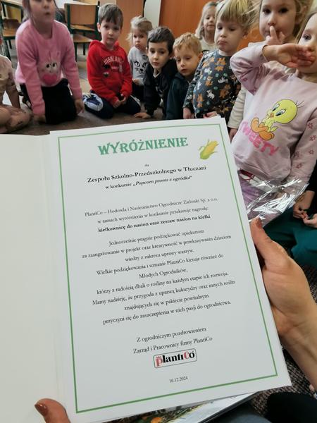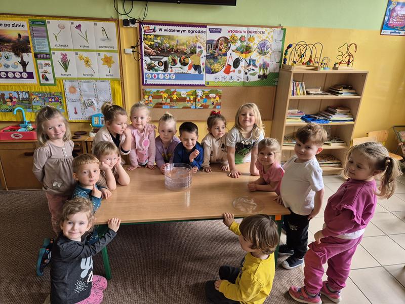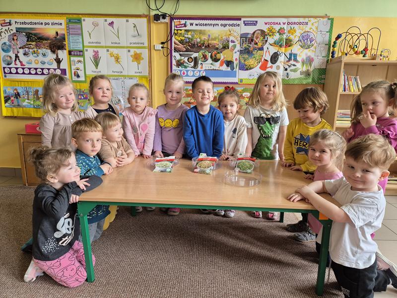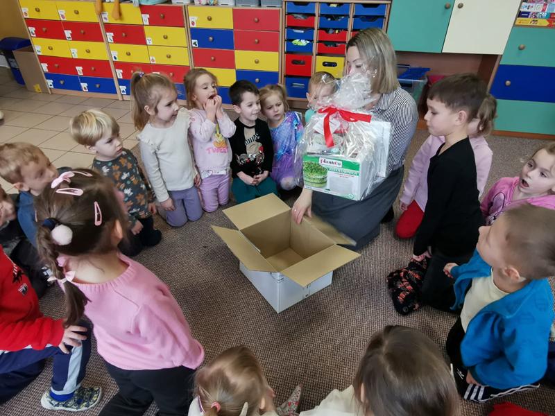 Przedszkolaki zostały wyróżnione w projekcie i otrzymały nagrodę od organizatorów w postaci kiełkownicy i nasion oraz budki lęgowej dla ptaków.