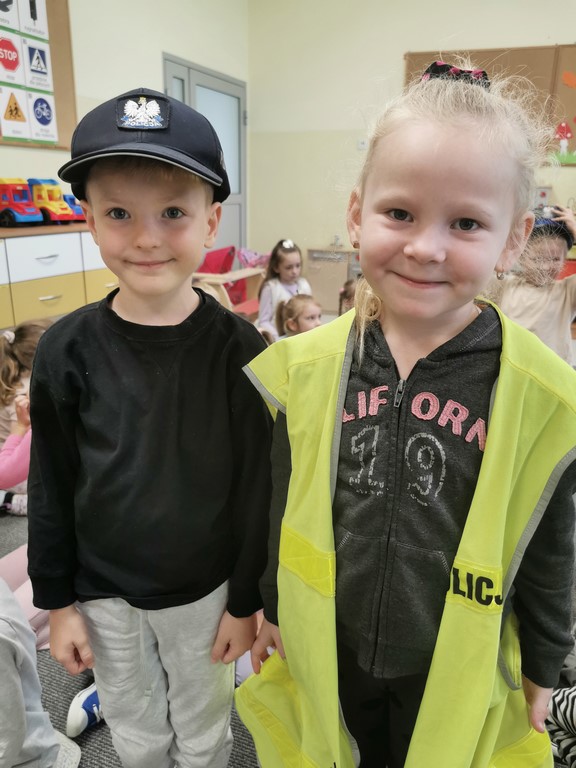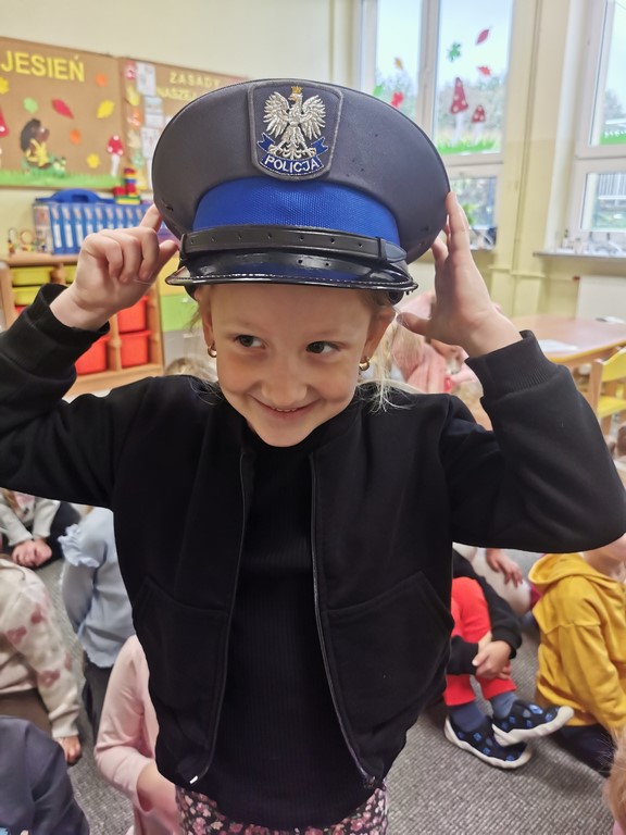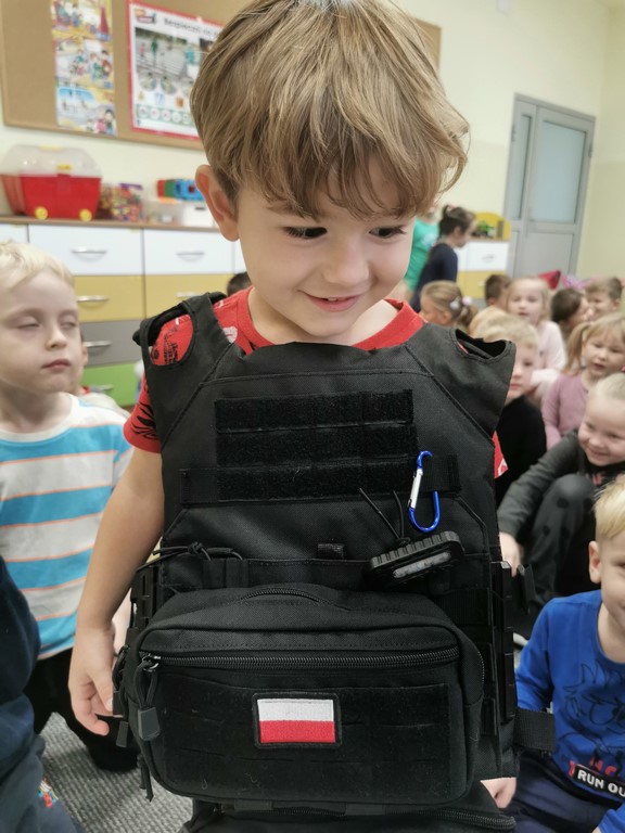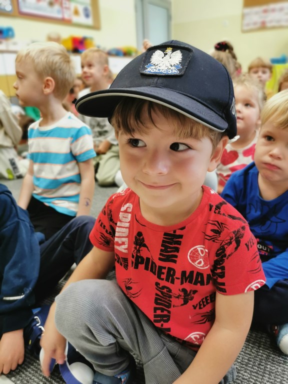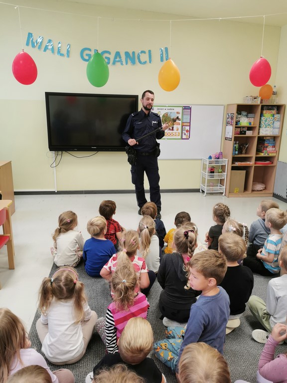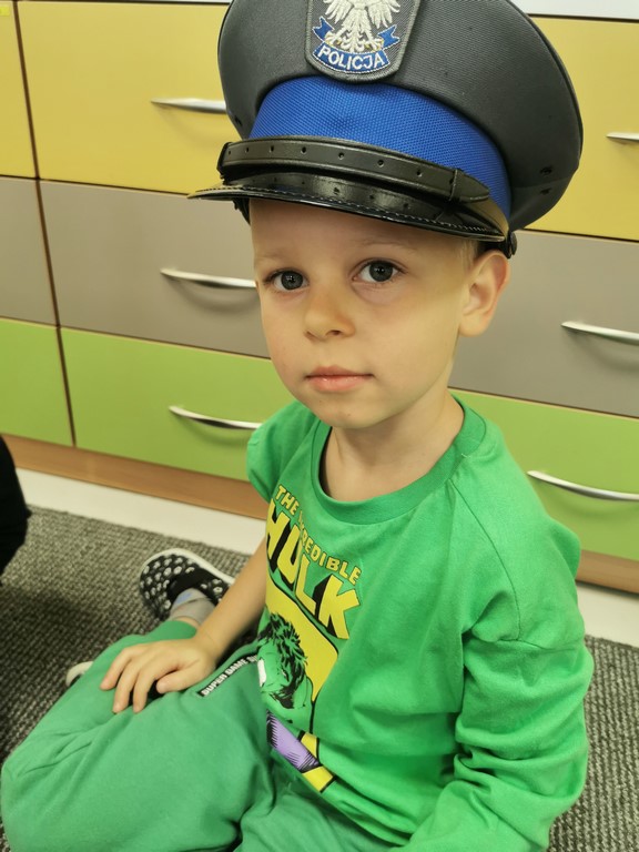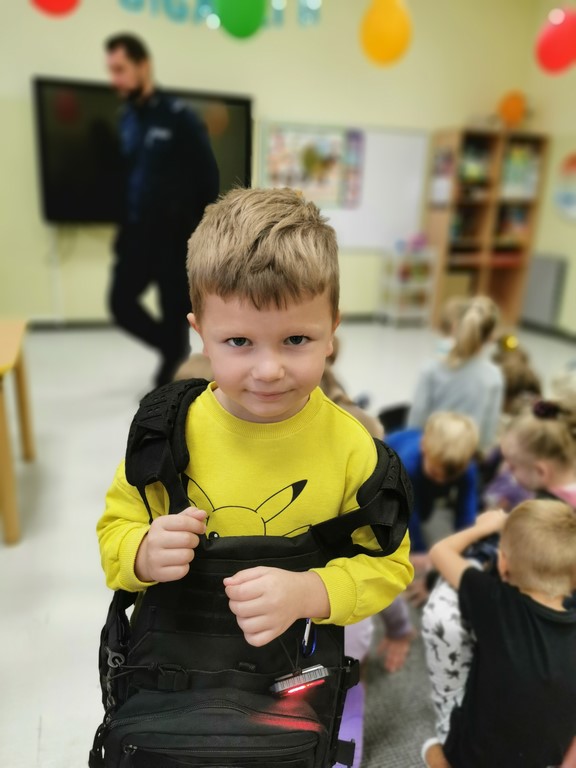 Dzieci z wielkim zainteresowaniem słuchały, zadawały pytania i chętnie dzieliły się swoimi doświadczeniami. Najwięcej emocji wzbudziła możliwość obejrzenia umundurowania i wyposażenia policjanta.