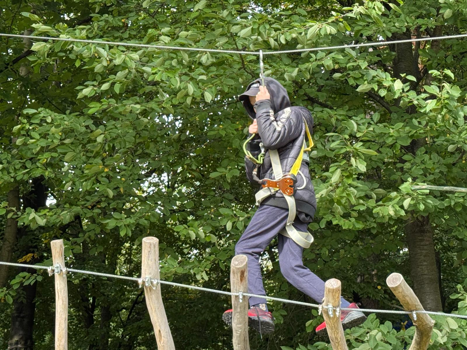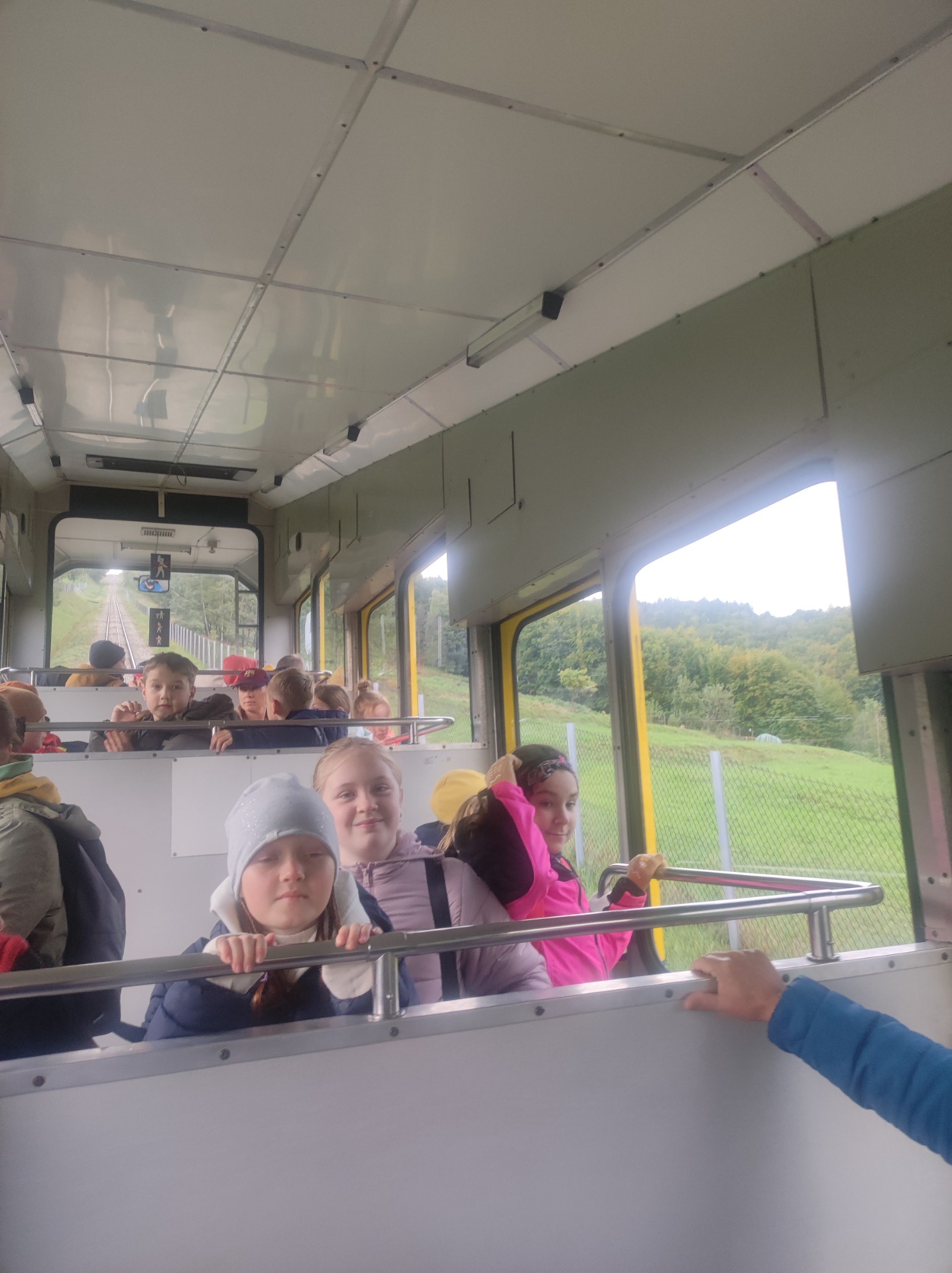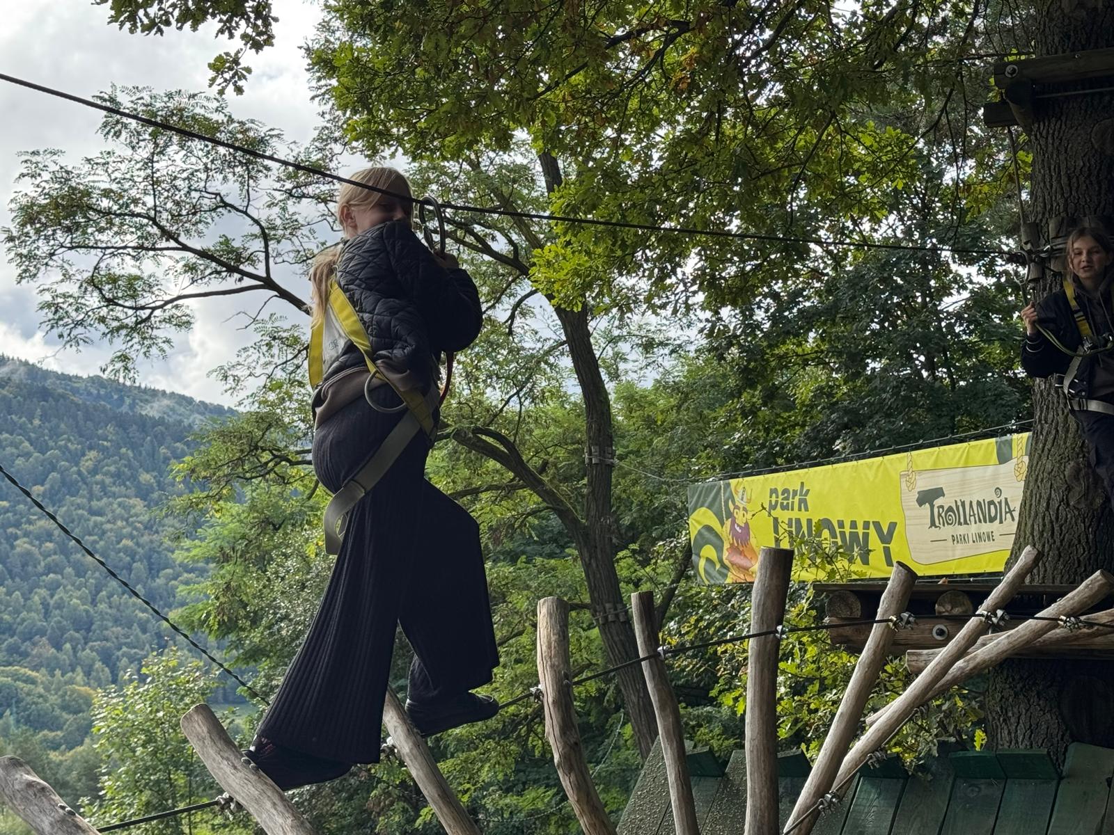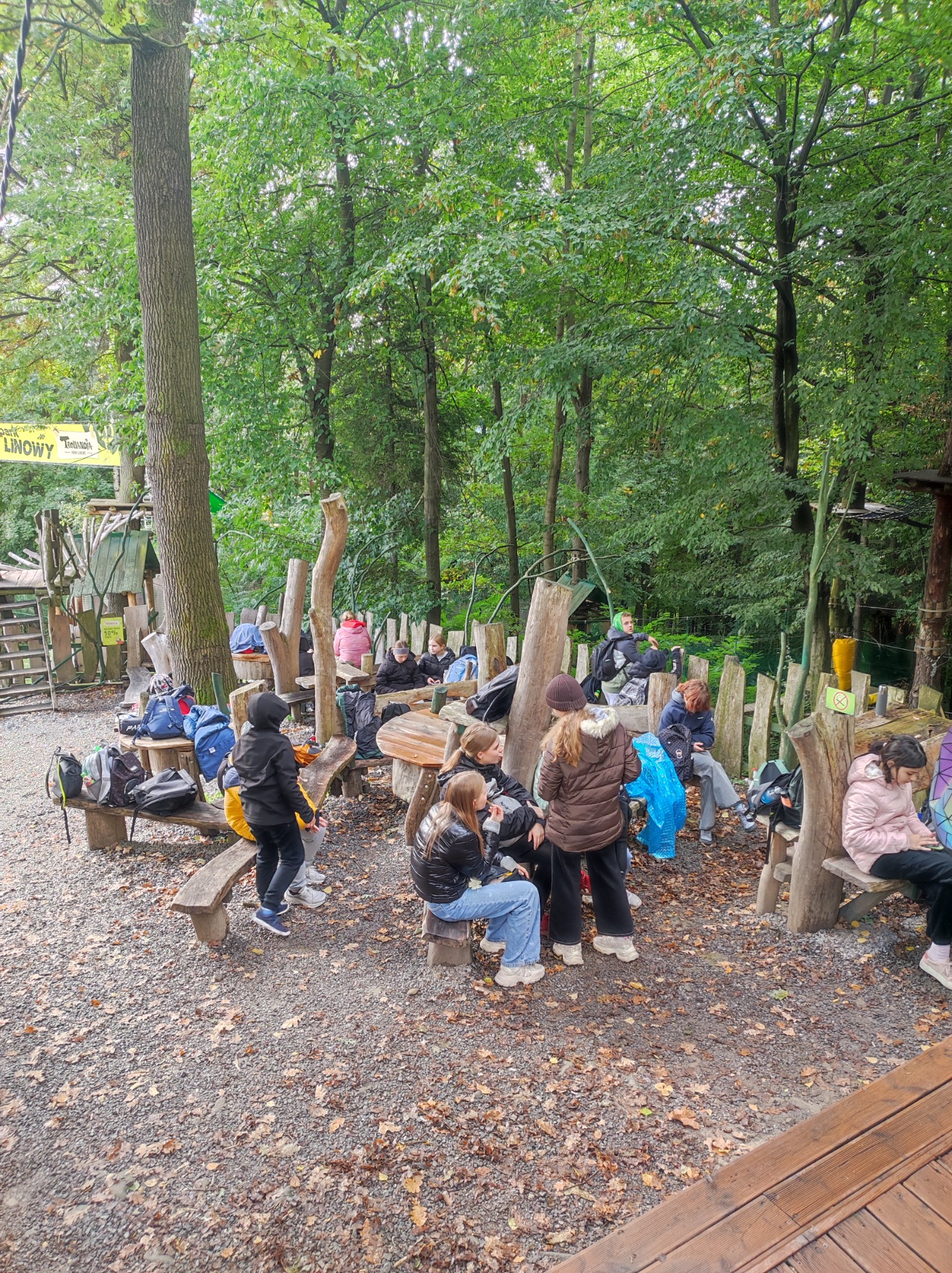 Po dotarciu na miejsce uczestnicy zostali podzieleni na dwie grupy. Pierwsza grupa wyjechała kolejką na szczyt, by podziwiać malownicze krajobrazy Beskidu Małego. Był czas na wspólne zdjęcia z panoramą w tle oraz drobne zakupy w sklepiku z pamiątkami. Druga grupa w tym czasie próbowała swoich sił w parku linowym – pełnym mostków, przeszkód i zjazdów, które wymagały odwagi, równowagi i sporej dawki energii. Po chwili role się odwróciły – każdy uczeń miał okazję zarówno podziwiać górskie widoki, jak i poczuć dreszczyk emocji w parku linowym.