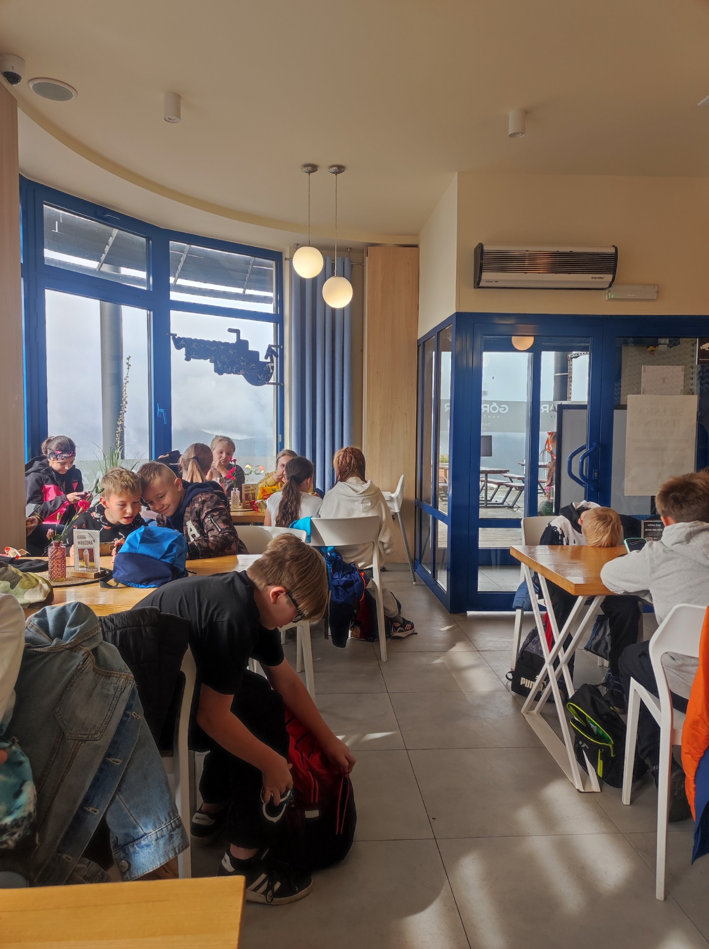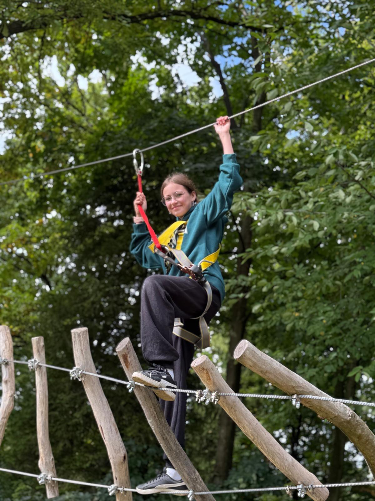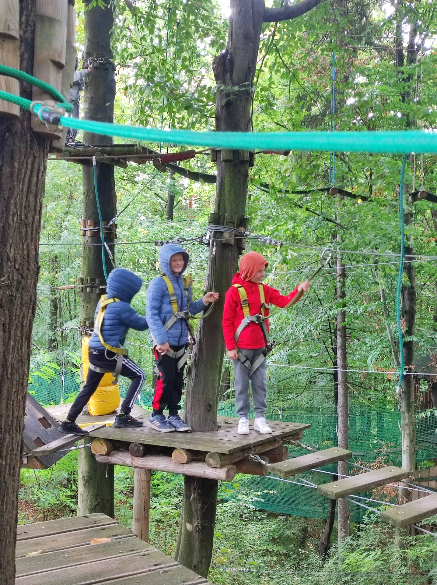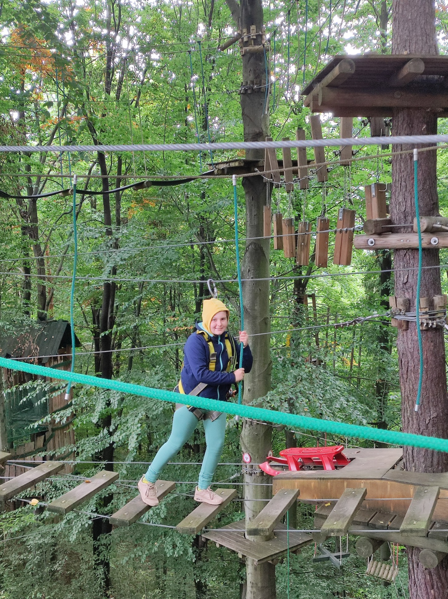 Po dotarciu na miejsce uczestnicy zostali podzieleni na dwie grupy. Pierwsza grupa wyjechała kolejką na szczyt, by podziwiać malownicze krajobrazy Beskidu Małego. Był czas na wspólne zdjęcia z panoramą w tle oraz drobne zakupy w sklepiku z pamiątkami. Druga grupa w tym czasie próbowała swoich sił w parku linowym – pełnym mostków, przeszkód i zjazdów, które wymagały odwagi, równowagi i sporej dawki energii. Po chwili role się odwróciły – każdy uczeń miał okazję zarówno podziwiać górskie widoki, jak i poczuć dreszczyk emocji w parku linowym.