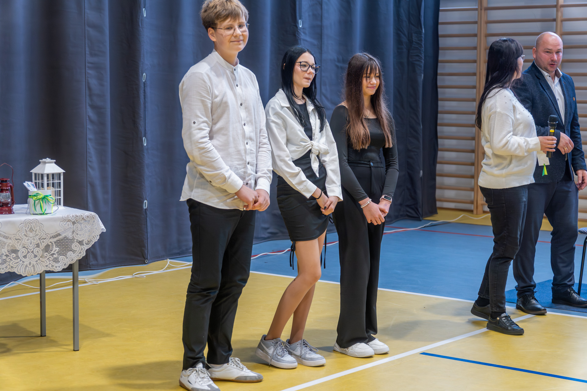 Na zakończenie przedstawiciele uczniów wręczyli nauczycielom oraz pracownikom drobne upominki – symboliczne gesty wdzięczności za trud i oddanie, z jakim każdego dnia wspierają naszą szkolną społeczność.
