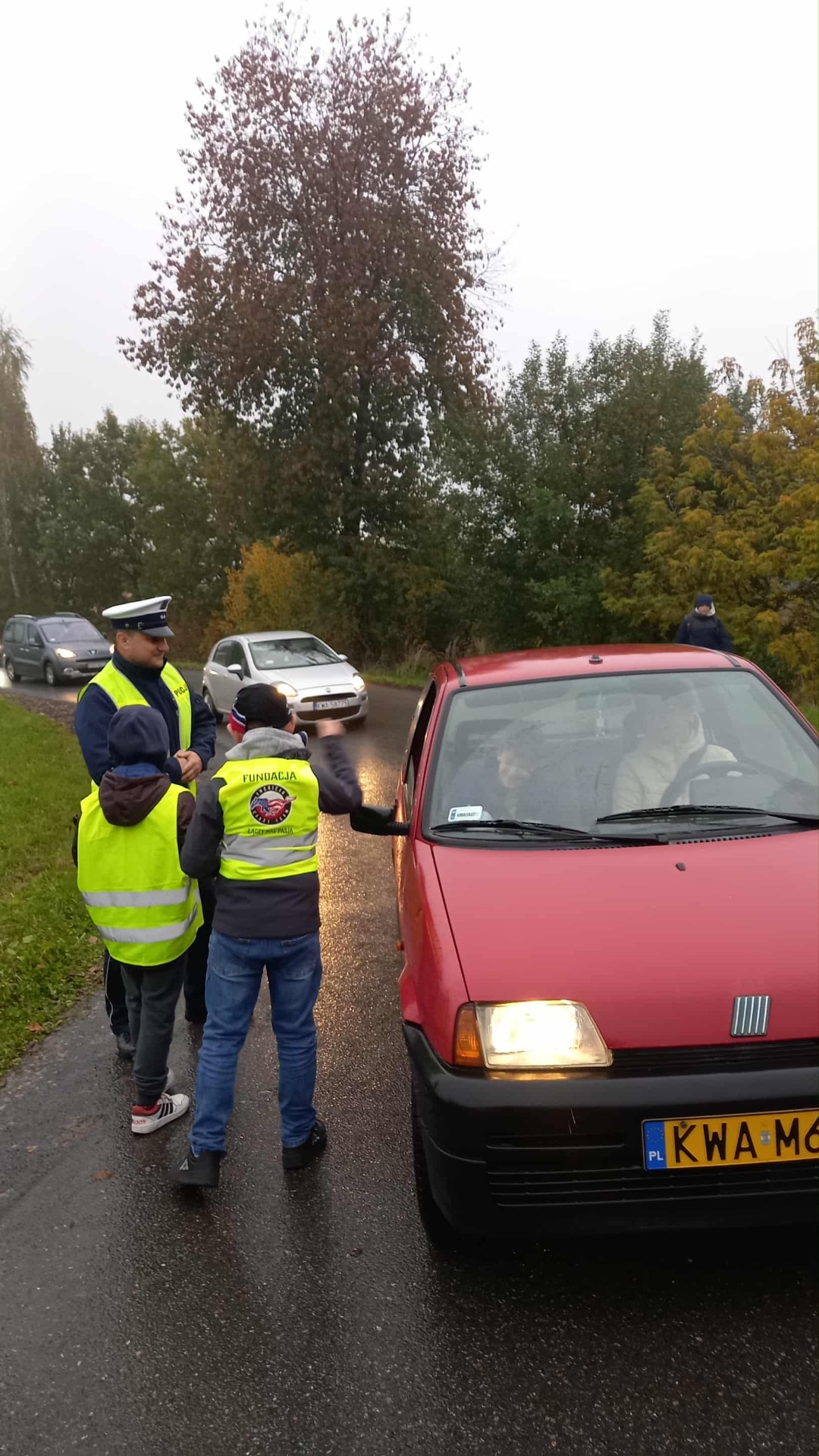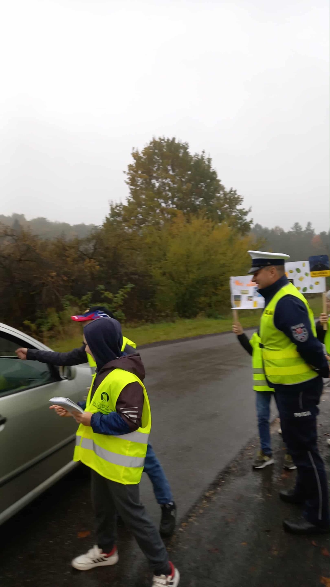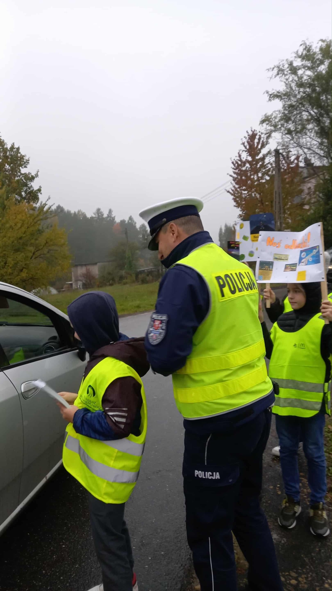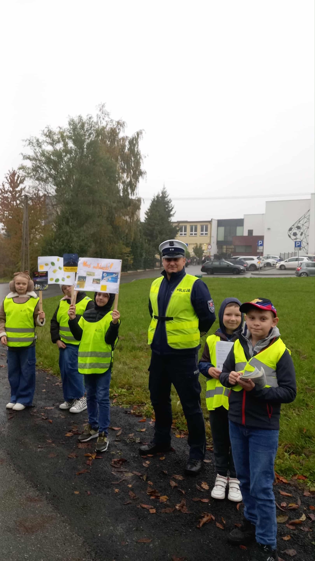 Podczas działań policjant przypominał rodzicom – kierowcom o konieczności zachowania szczególnej ostrożności, ograniczenia prędkości oraz przestrzegania przepisów ruchu drogowego w rejonie szkoły. W tym samym czasie uczniowie rozdawali kierowcom ulotki informacyjne, zachęcając do bezpiecznych zachowań na drodze oraz do noszenia elementów odblaskowych.
