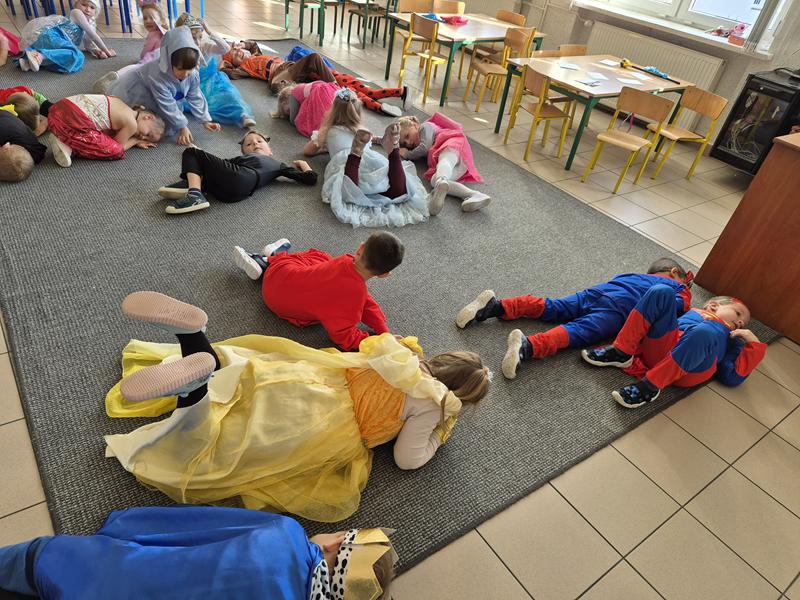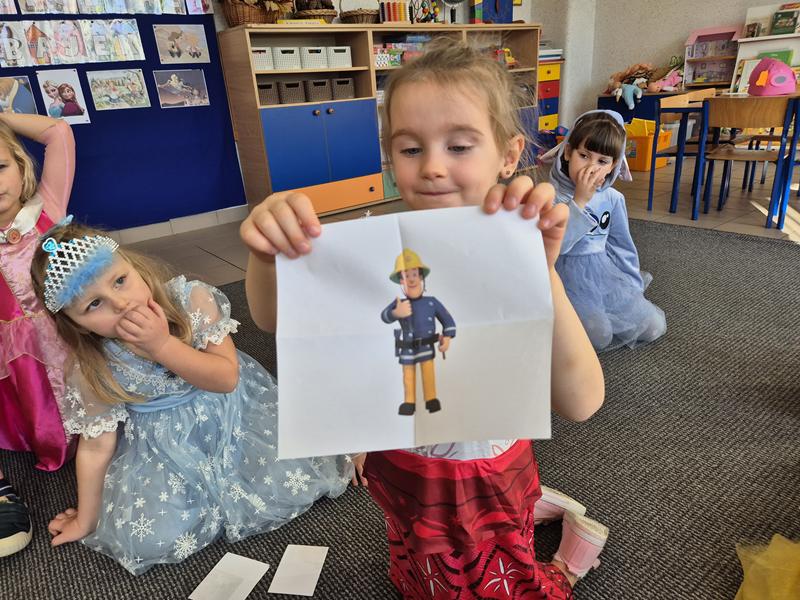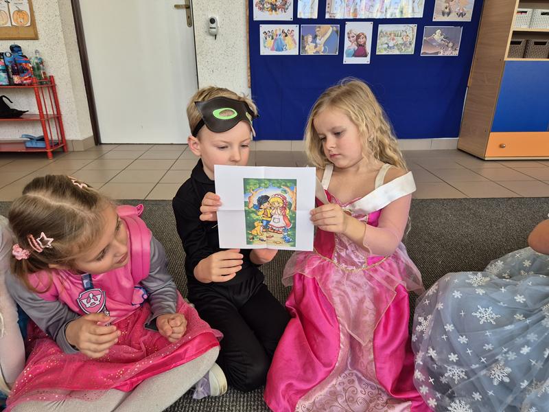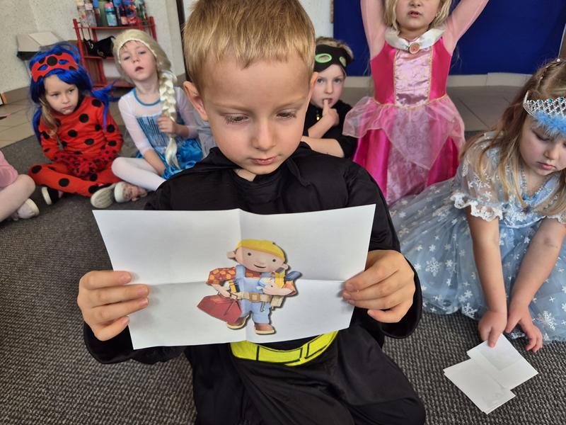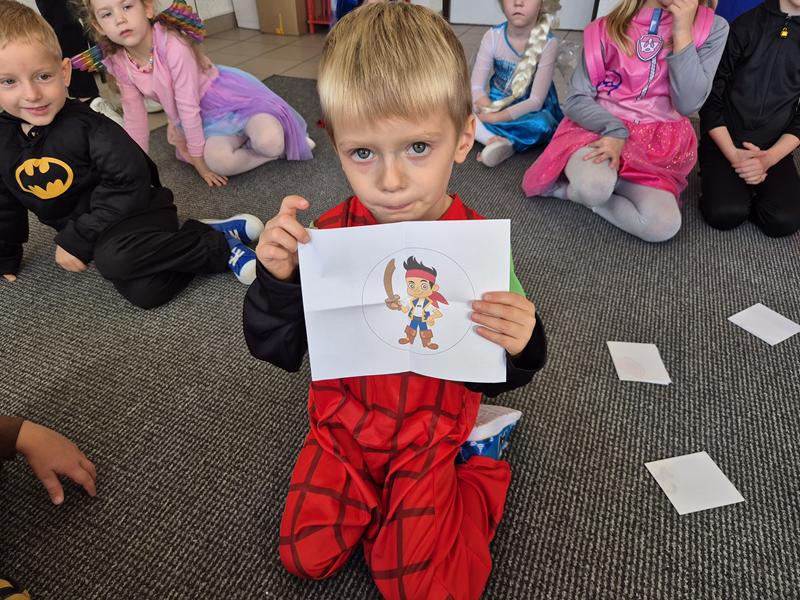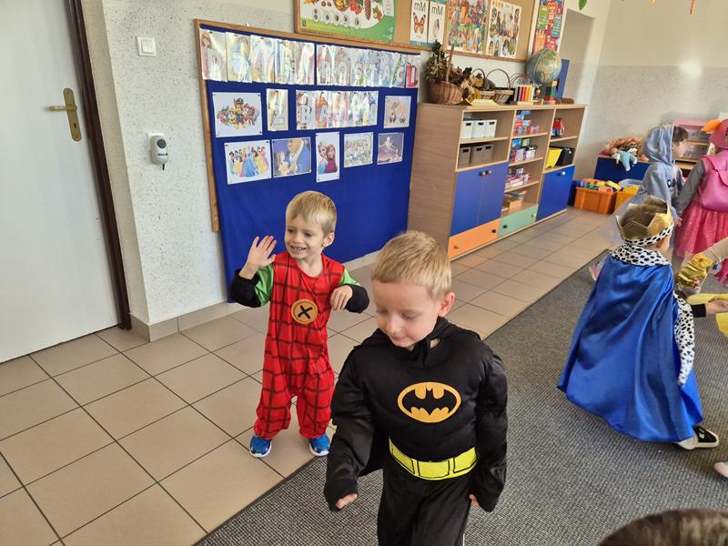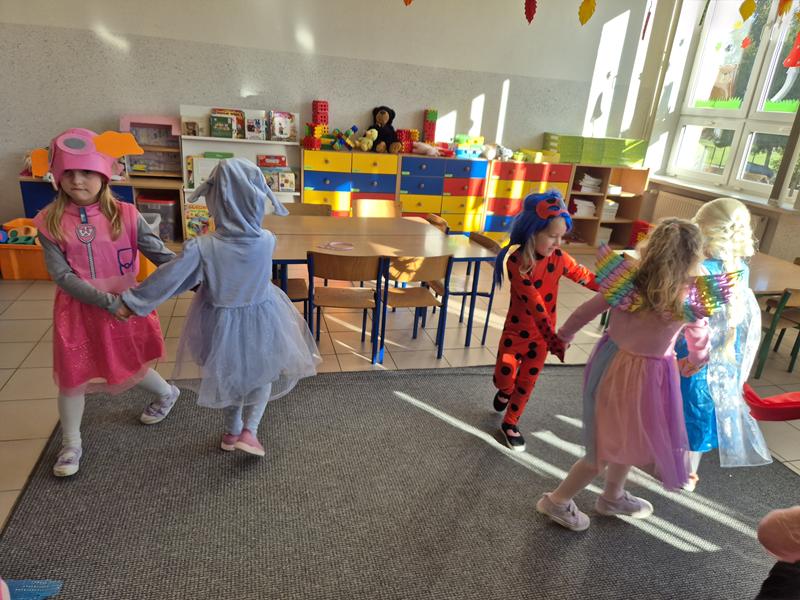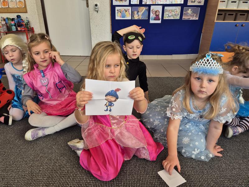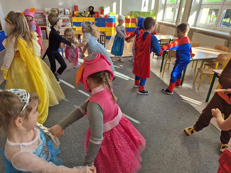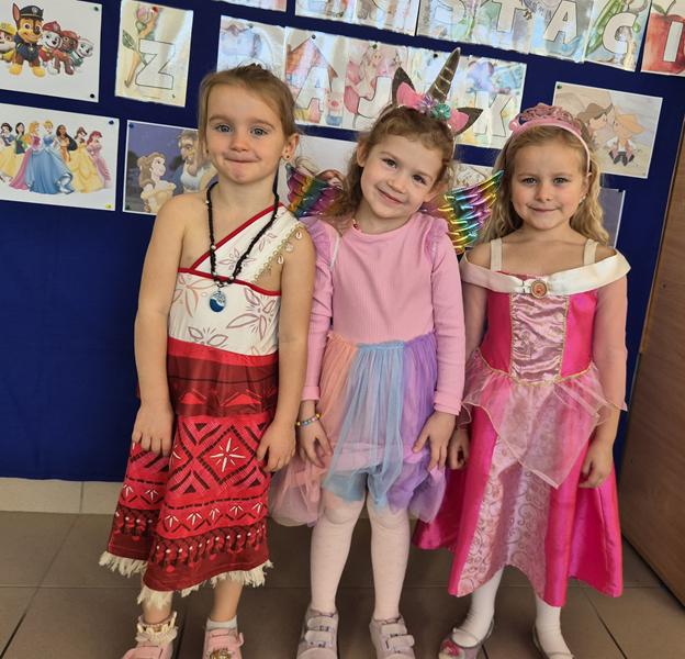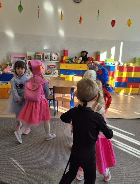 Do przedszkola przybyły dzieci przebrane w piękne bajkowe stroje. W tym dniu zabawom i tańcom nie było końca. Dzieci rozpoznawały bajkowe postaci i tytuły bajek po rekwizytach. Układały bajkowe puzzle. Rozwiązywały bajkowe zagadki i wykonywały bajkowe zadania. Były muzyczne zgadywanki bajkowe, zabawy ruchowe oraz prezentacje dziecięcych przebrań.