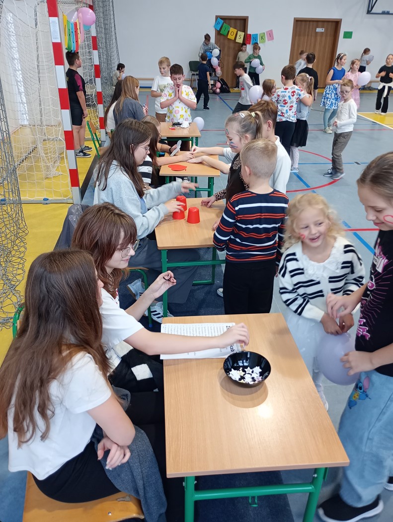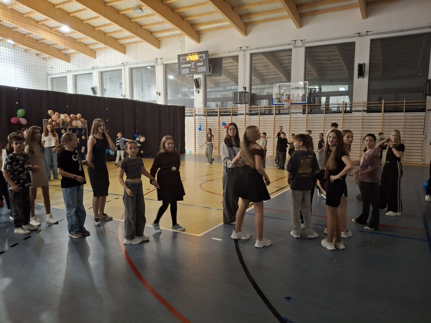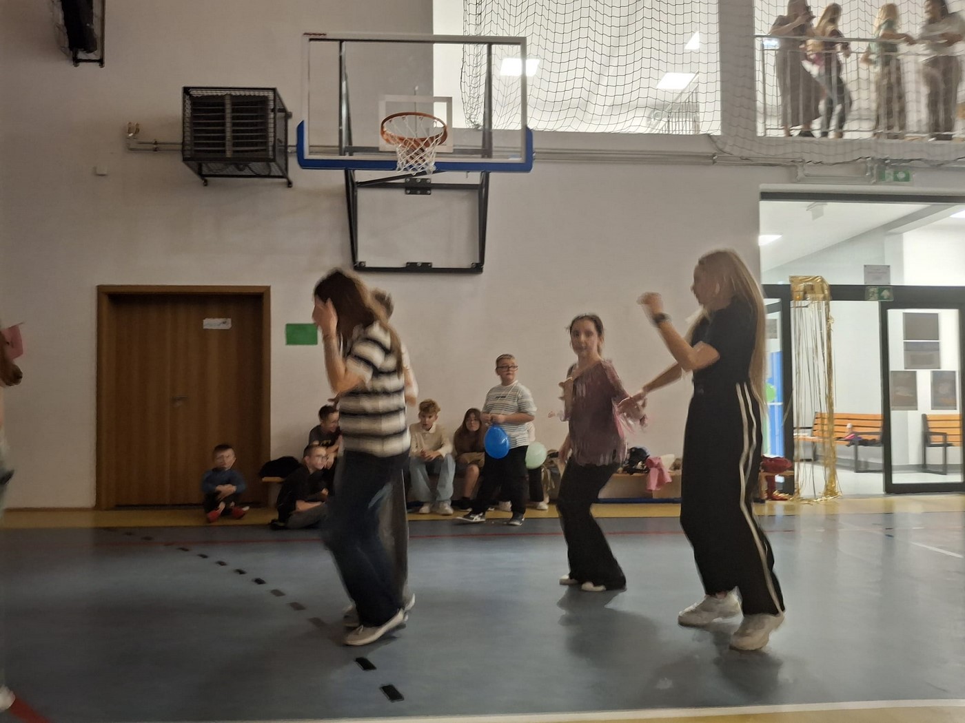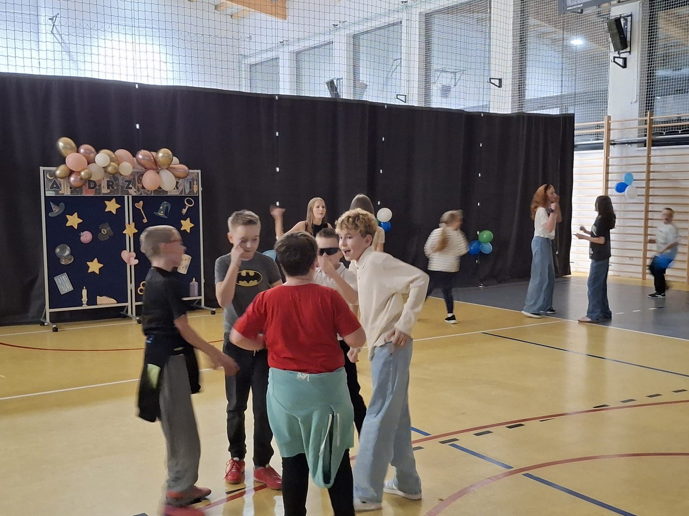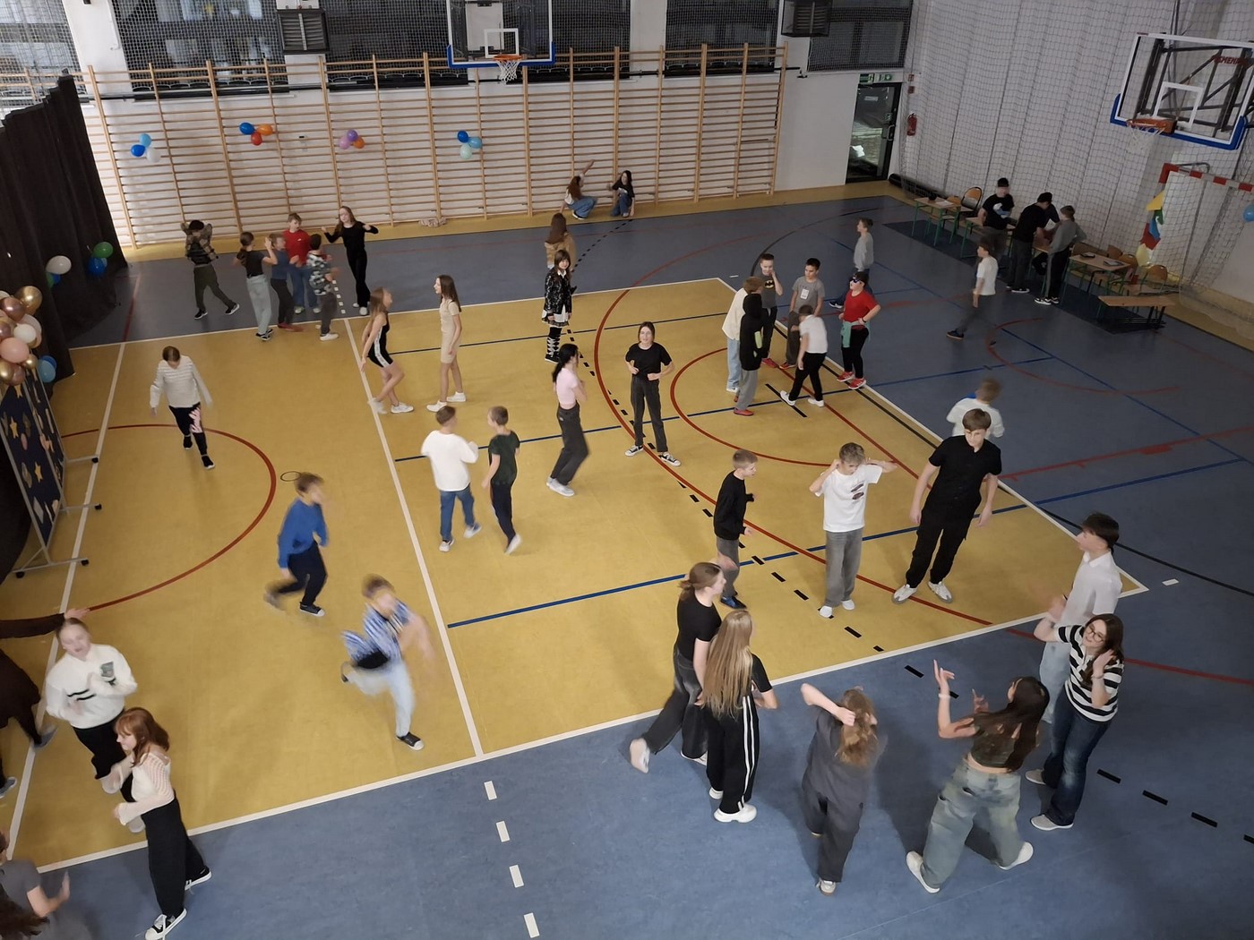 Następnie nadszedł czas na zabawę dla starszych uczniów. W programie znalazły się tańce, kolejne wróżby, konkursy oraz wspólna integracja przygotowana przez Samorząd Uczniowski. To była świetna okazja do integracji i spędzenia czasu w przyjemnej atmosferze.