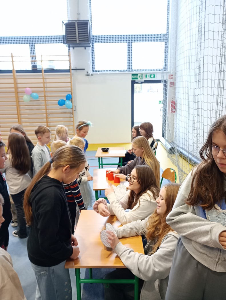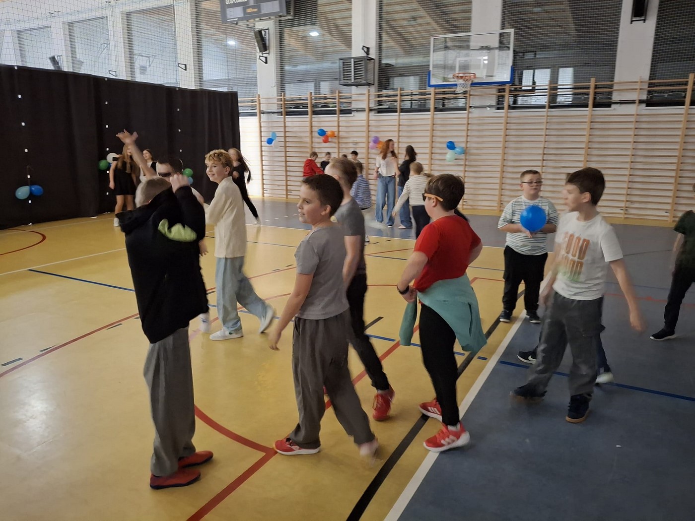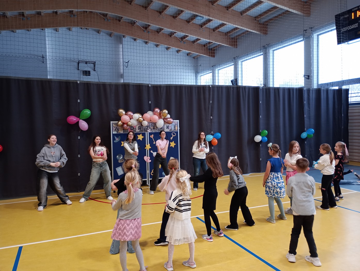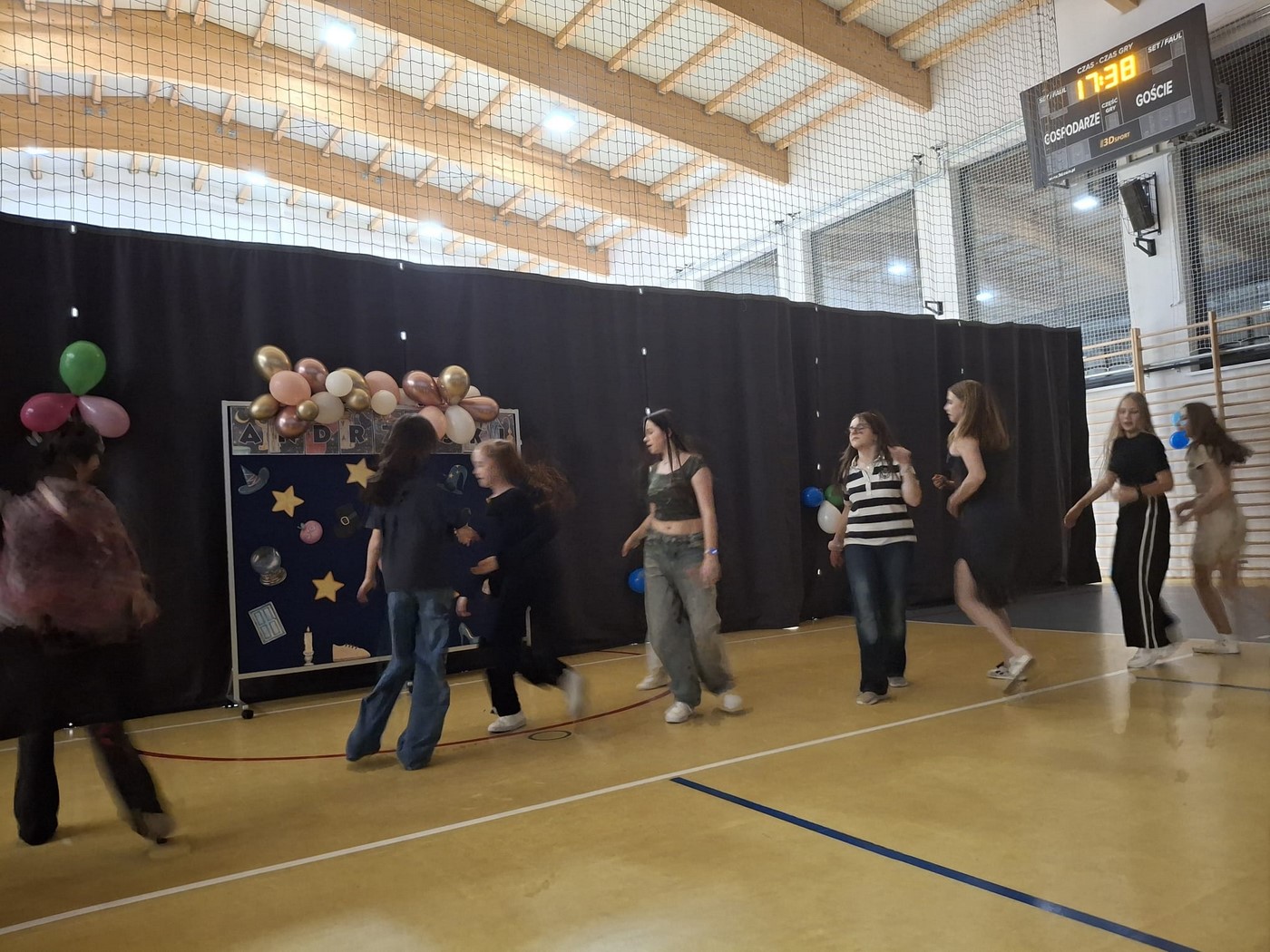 Następnie nadszedł czas na zabawę dla starszych uczniów. W programie znalazły się tańce, kolejne wróżby, konkursy oraz wspólna integracja przygotowana przez Samorząd Uczniowski. To była świetna okazja do integracji i spędzenia czasu w przyjemnej atmosferze.