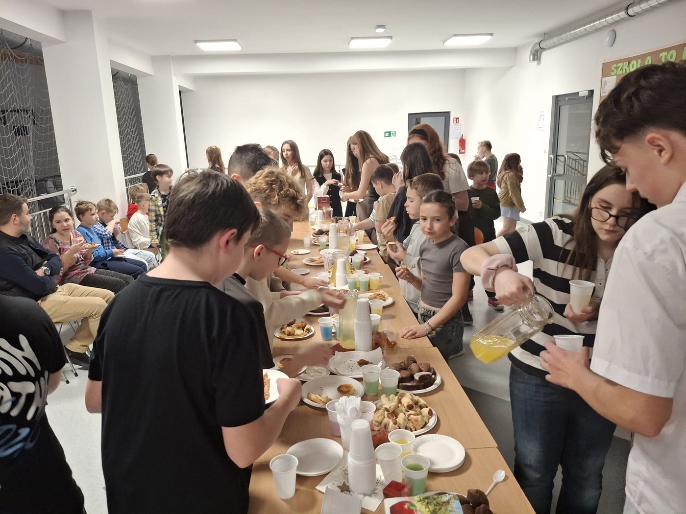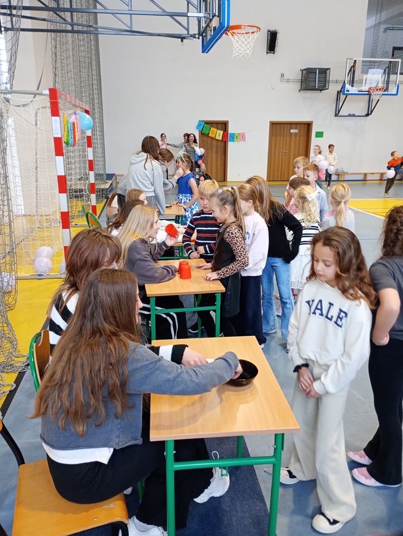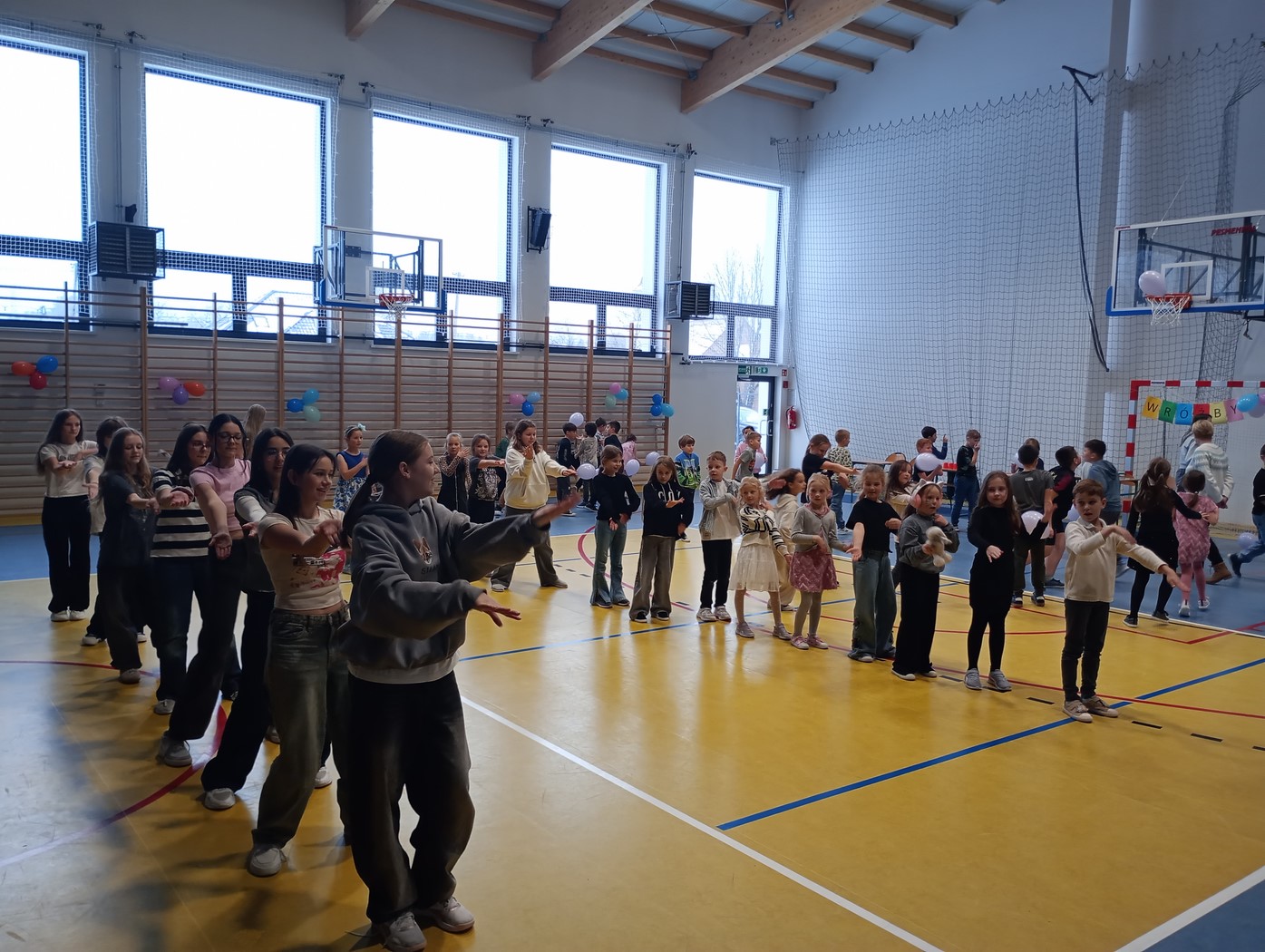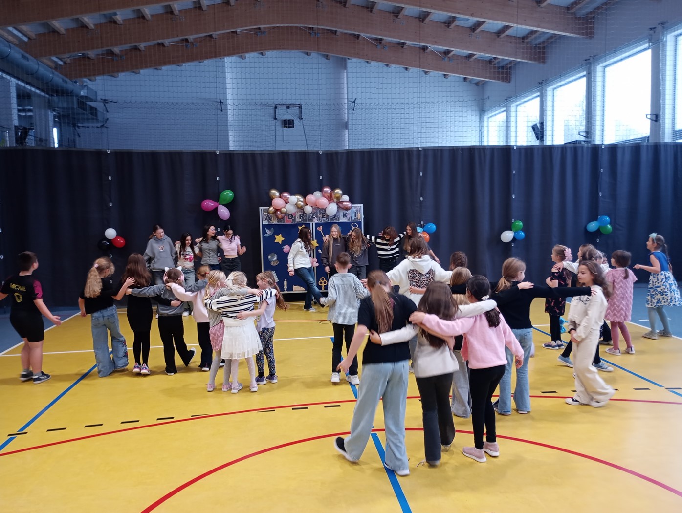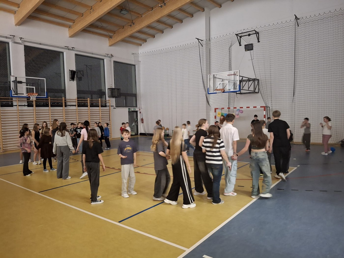 Następnie nadszedł czas na zabawę dla starszych uczniów. W programie znalazły się tańce, kolejne wróżby, konkursy oraz wspólna integracja przygotowana przez Samorząd Uczniowski. To była świetna okazja do integracji i spędzenia czasu w przyjemnej atmosferze.