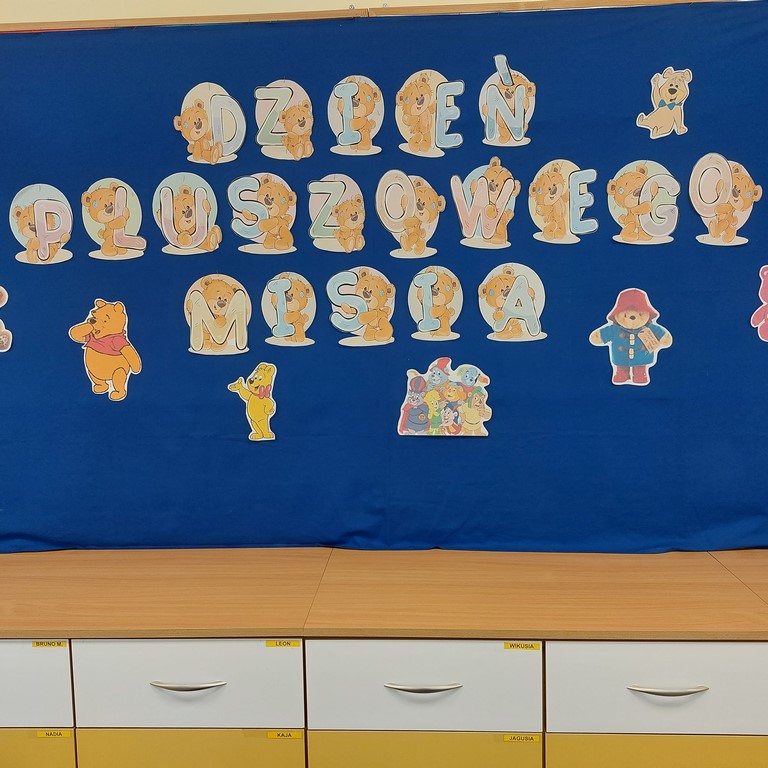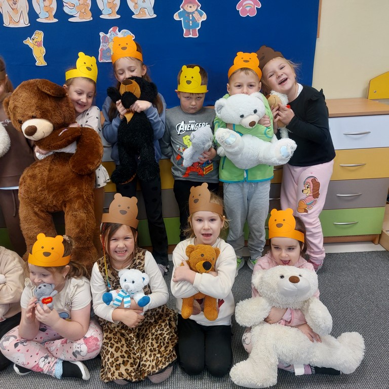 W naszym przedszkolu również obchodziliśmy to sympatyczne święto. Każde dziecko przyszło w tym dniu ze swoim ulubionym misiem - były wspólne zabawy z misiami, gimnastyka i tańce przy „misiowych” piosenkach. „Biedronki” miały też różne zadania - przeliczanie misiów, ćwiczenia grafomotoryczne, malowanie misia farbami, rozpoznawanie misiów - bohaterów bajek. Gościliśmy również uczennice ze Szkolnego Koła Wolontariatu, które w strojach przyjaciół Kubusia Puchatka bawiły się z dziećmi przy piosenkach „Pokochaj pluszowego misia” oraz „Mój przyjaciel miś”. Dzieci degustowały żelki - misie oraz zlizywały miód z wafelków, ćwicząc równocześnie narządy artykulacyjne. Na zakończenie przedszkolaki obejrzały bajkę „Przygody Misia Uszatka” oraz wysłuchały fragmentu książki „Przygody Kubusia Puchatka”. To był bardzo miły i wesoły dzień. Dzieci wraz ze swoimi ulubieńcami bawiły się znakomicie.