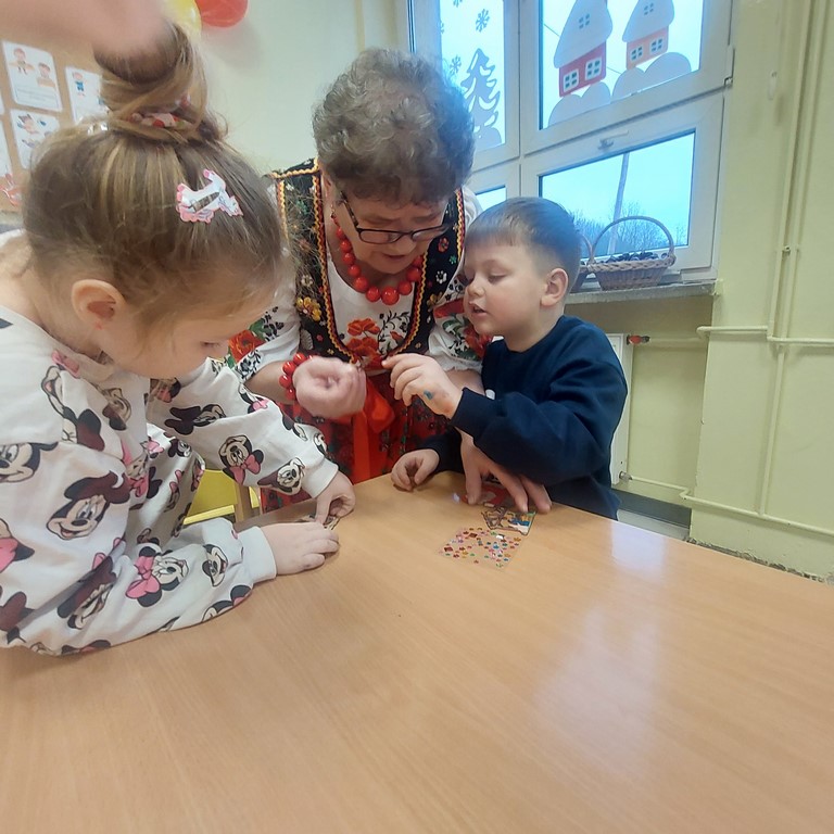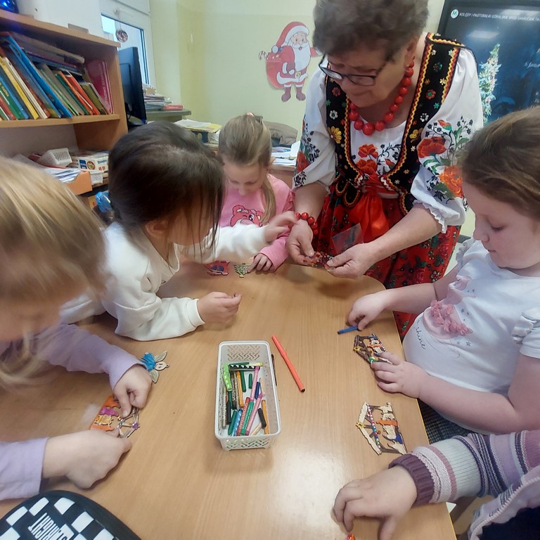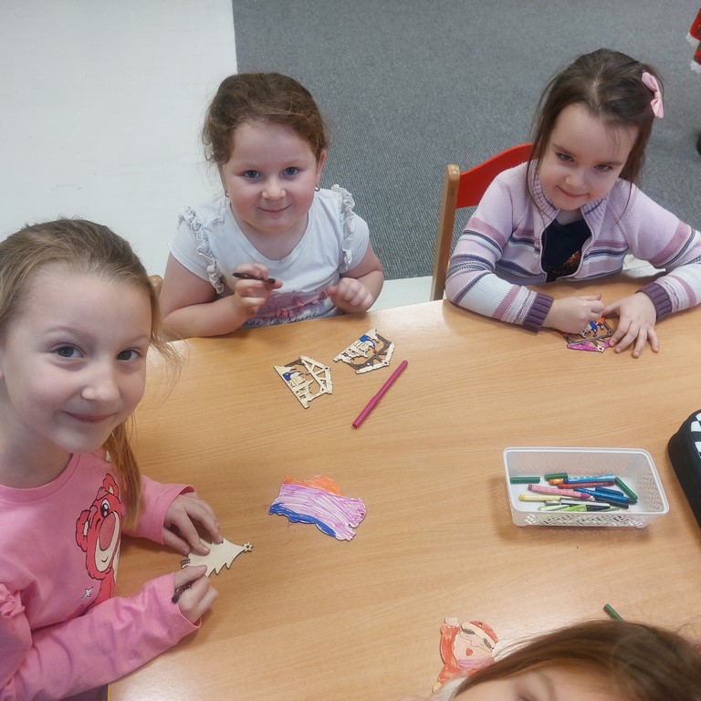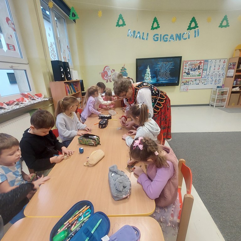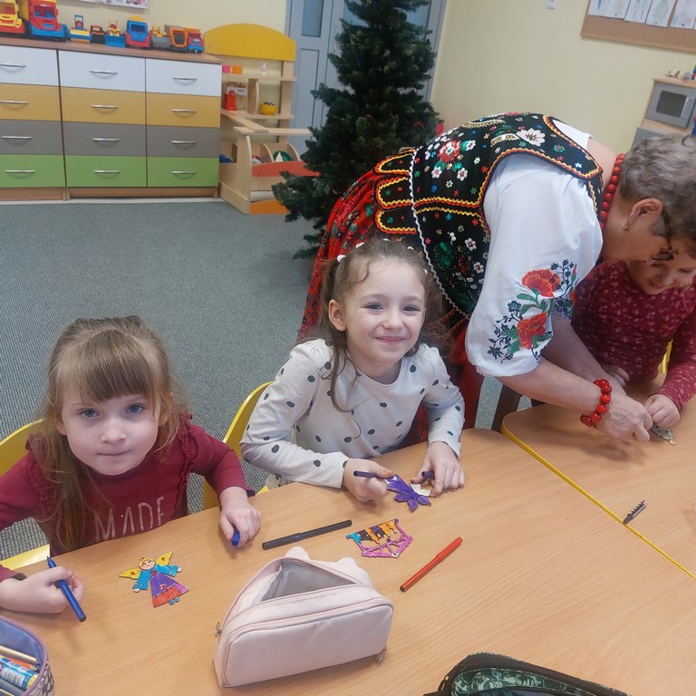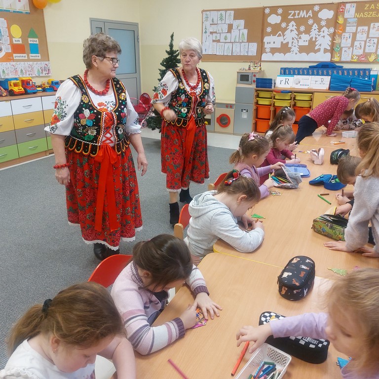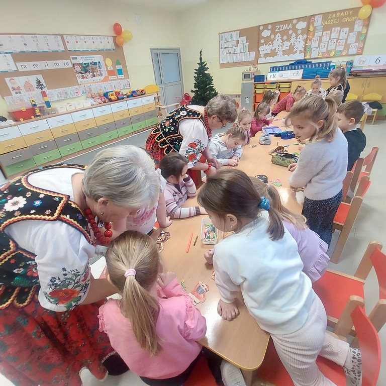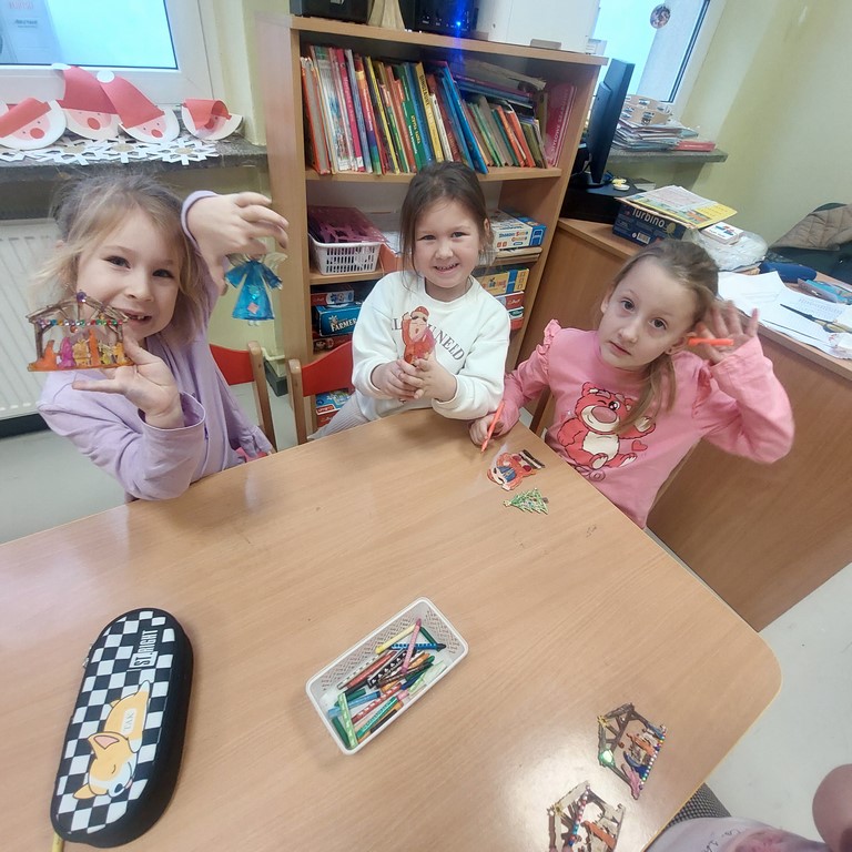 9 grudnia w naszym przedszkolu można już było poczuć świąteczną atmosferę. Tego dnia odwiedziły nas Panie z KGW w Tłuczani. Przedświąteczne spotkania z KGW stały się tradycją Przedszkola w Tłuczani i trwają już kilkanaście lat. W tym dniu Pani Ula, Pani Ania, Pani Wandzia i Pani Krysia przeprowadziły we wszystkich grupach przedszkolnych warsztaty plastyczne - „Przygotowujemy się do Świąt - robimy ozdoby choinkowe”. Panie opowiedziały dzieciom o tradycjach związanych ze Świętami Bożego Narodzenia, a następnie dzieci pod okiem Pań przygotowywały ozdoby na przedszkolną choinkę. Tym razem były to drewniane ozdoby - szopki, Mikołaje, aniołki, dzwoneczki, choinki, które dzieci ozdabiały flamastrami, kredkami, cekinami, koralikami, a następnie wieszały na choince. Przedszkolaki z zainteresowaniem słuchały instrukcji Pań oraz z zaangażowaniem ozdabiały nawet po kilka zawieszek. Na zakończenie dzieci zaśpiewały gościom piosenkę, podziękowały za warsztaty i zaprosiły Panie na przyszły rok.