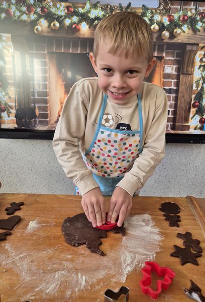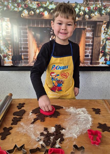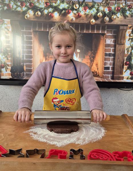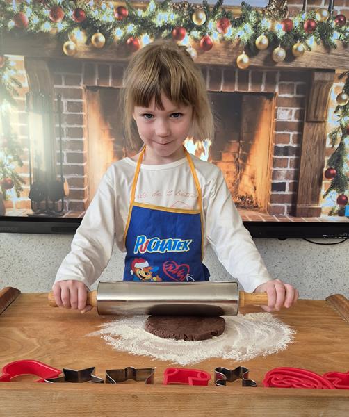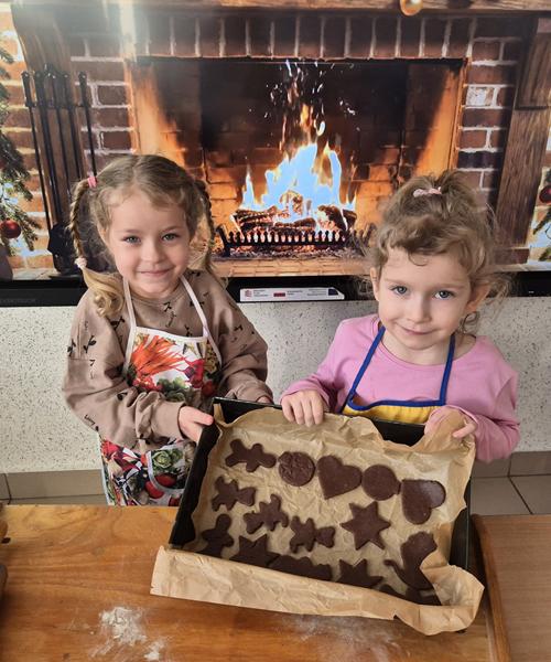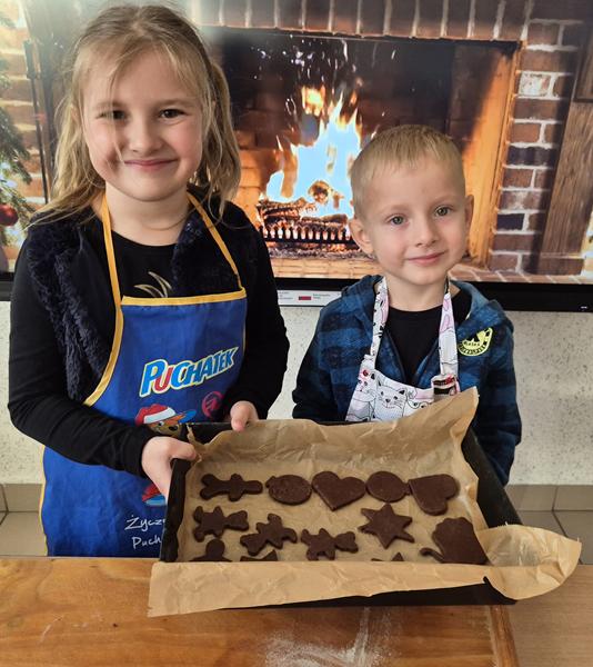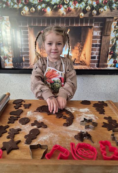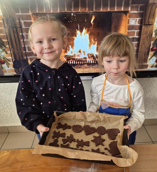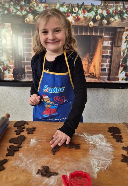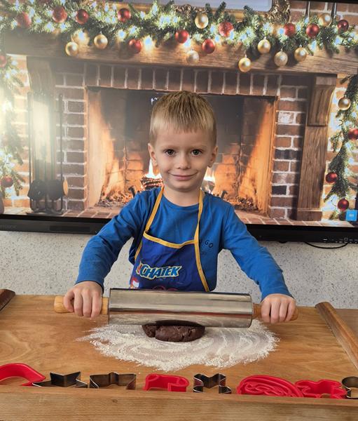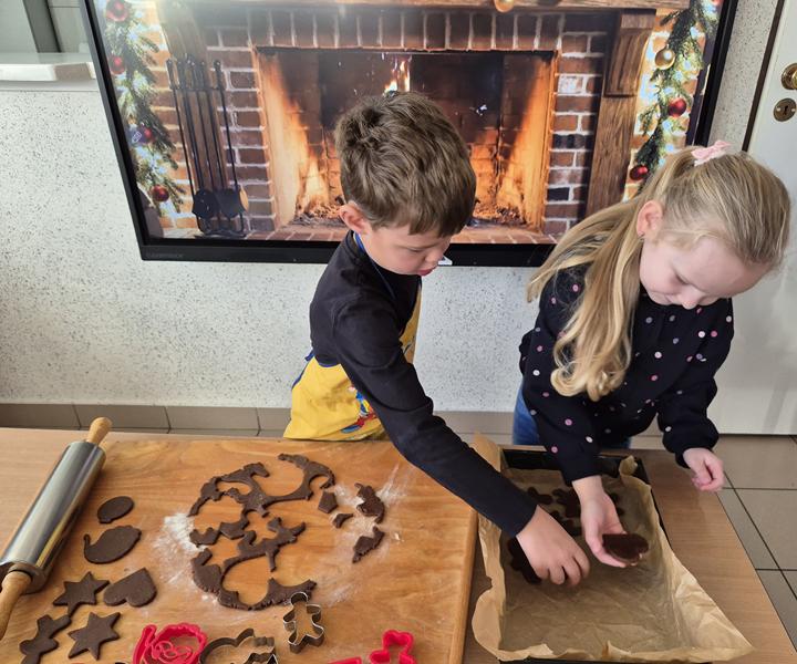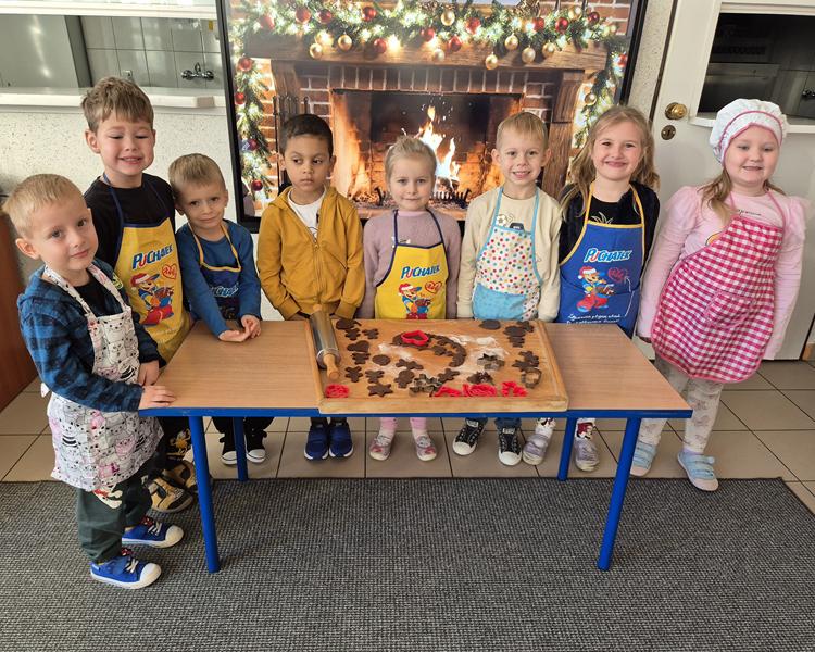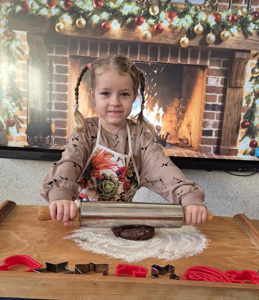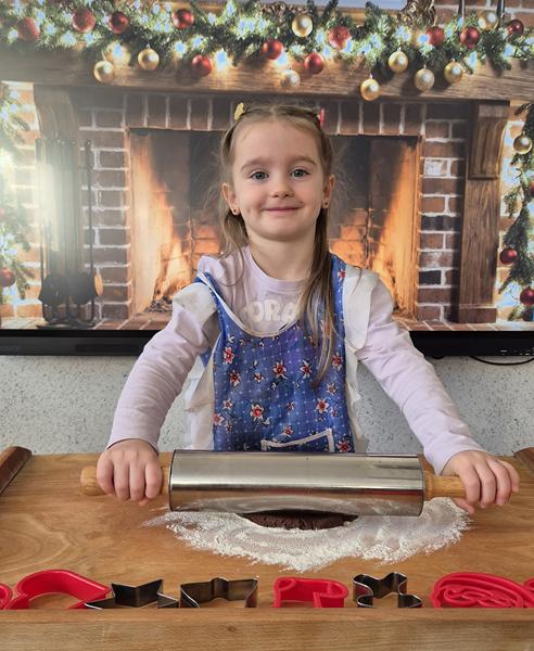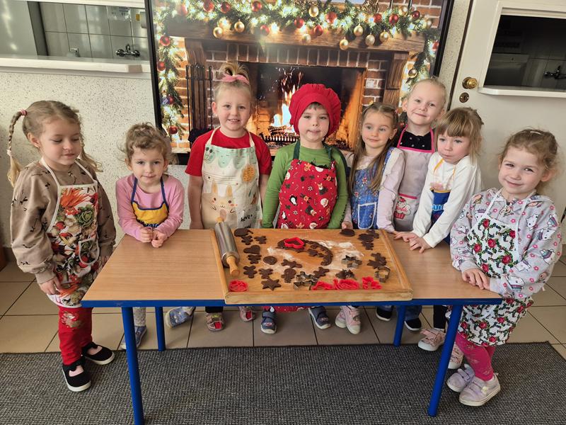 W naszej grupie czas oczekiwania na święta rozpoczęliśmy od ubierania choinki w bombki i ozdoby. Wiele radości sprawiło dzieciom wspólne tworzenie i wykrawanie pierniczków. Przedszkolaki z zapałem nakładały na ciasteczka lukrowe wzory w różnych kolorach. Następnie dodawały cukrowe posypki, jadalne koraliki i perełki, tworząc małe arcydzieła.