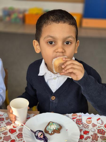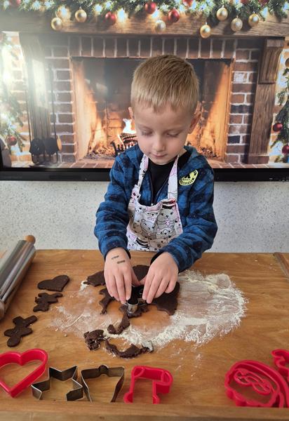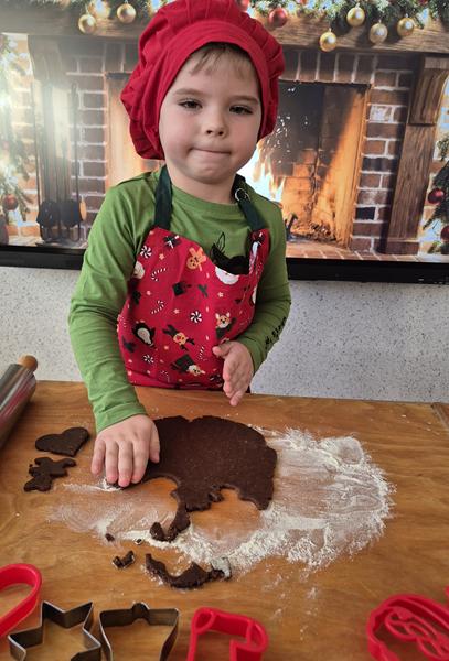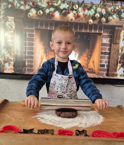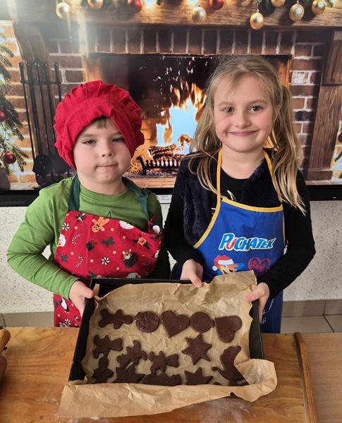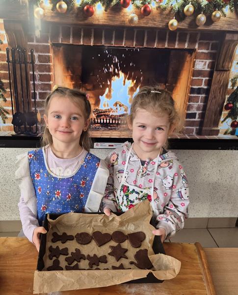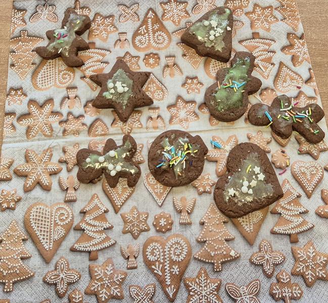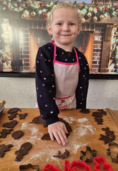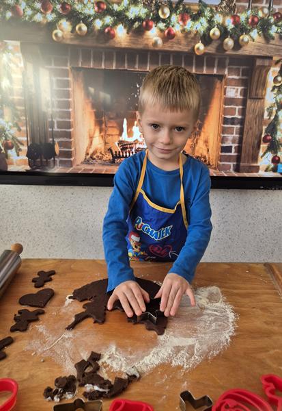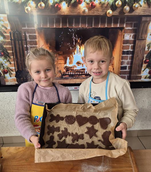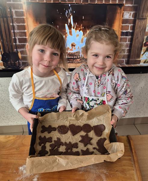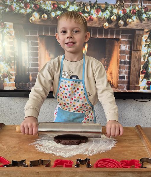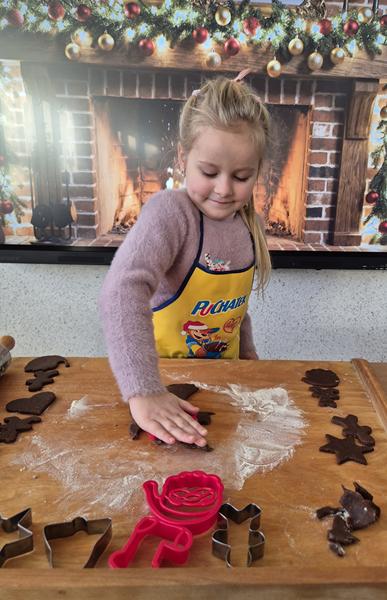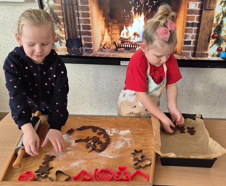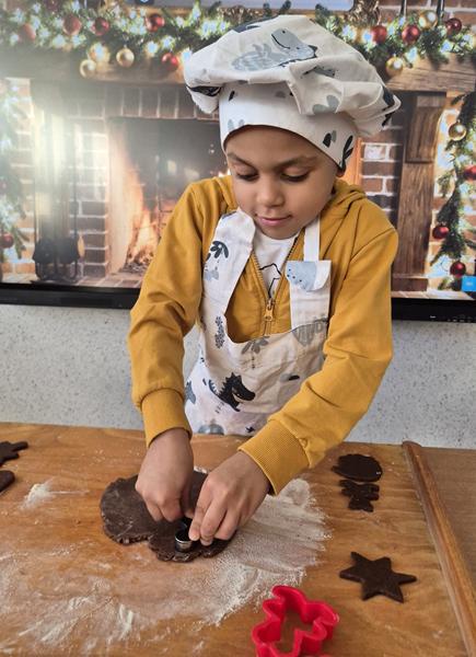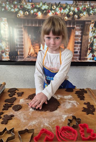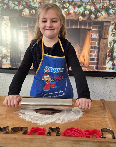 W naszej grupie czas oczekiwania na święta rozpoczęliśmy od ubierania choinki w bombki i ozdoby. Wiele radości sprawiło dzieciom wspólne tworzenie i wykrawanie pierniczków. Przedszkolaki z zapałem nakładały na ciasteczka lukrowe wzory w różnych kolorach. Następnie dodawały cukrowe posypki, jadalne koraliki i perełki, tworząc małe arcydzieła.