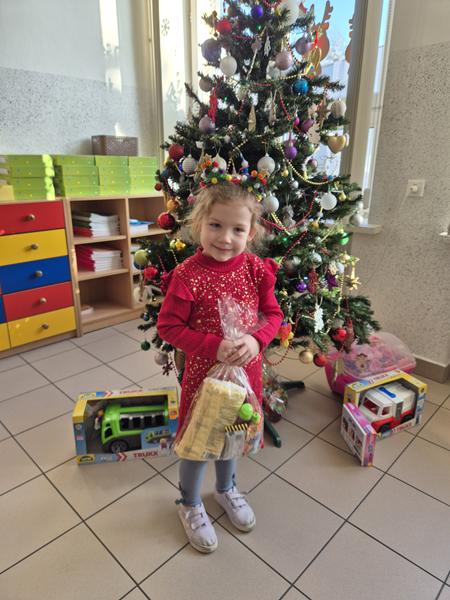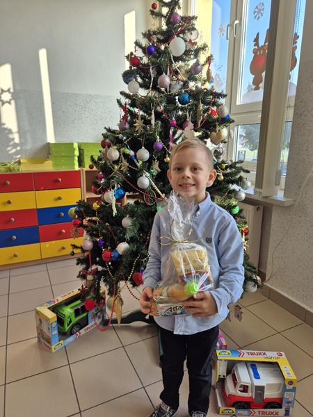 Zwieńczeniem tych wyjątkowych chwil była radosna niespodzianka. Pod choinką na dzieci czekały wspaniałe upominki – nowe zabawki, które wywołały mnóstwo radości i uśmiechów na twarzach wszystkich przedszkolaków oraz paczki ze smakołykami - ufundowane przez Radę Rodziców, za co serdecznie dziękujemy!