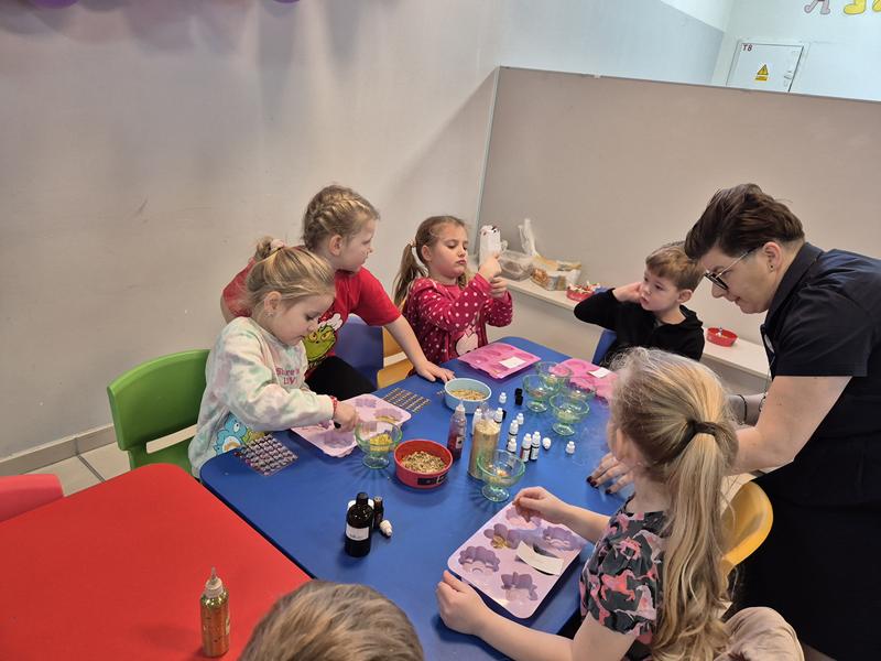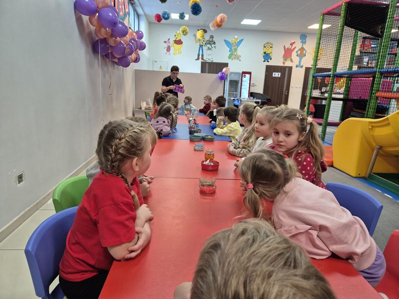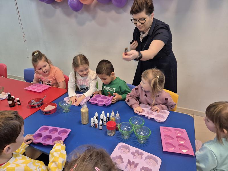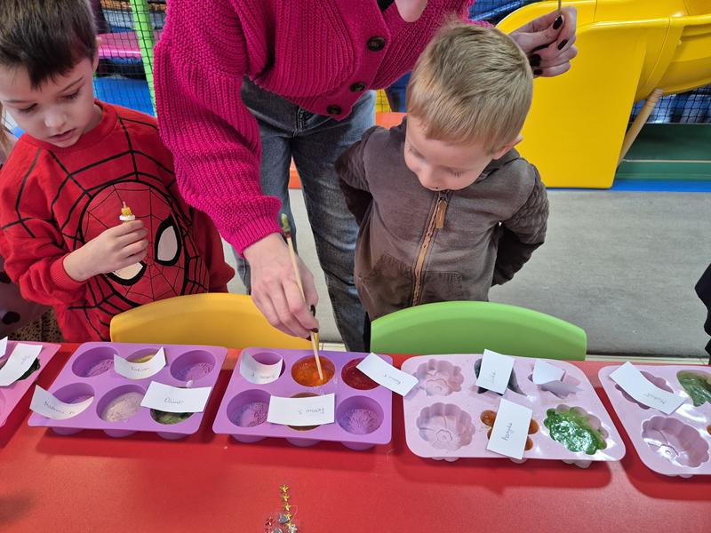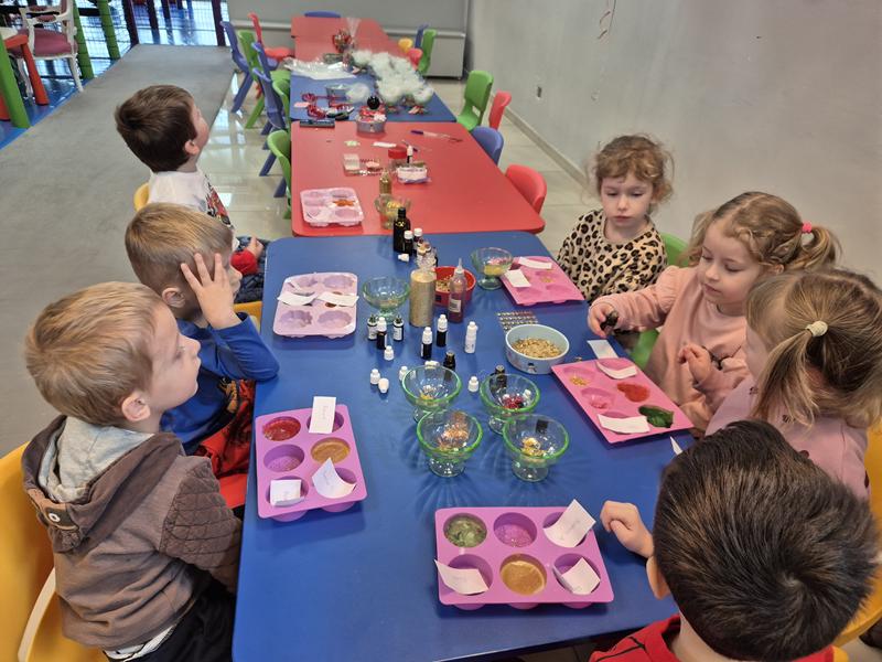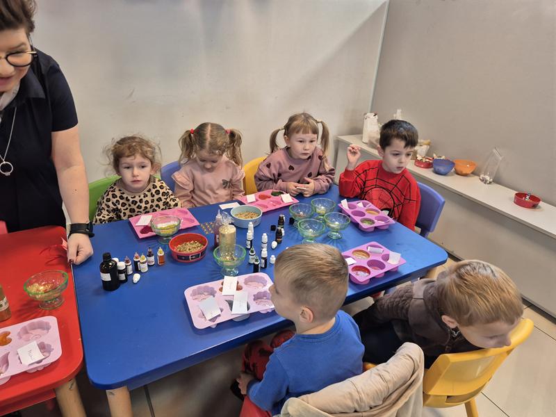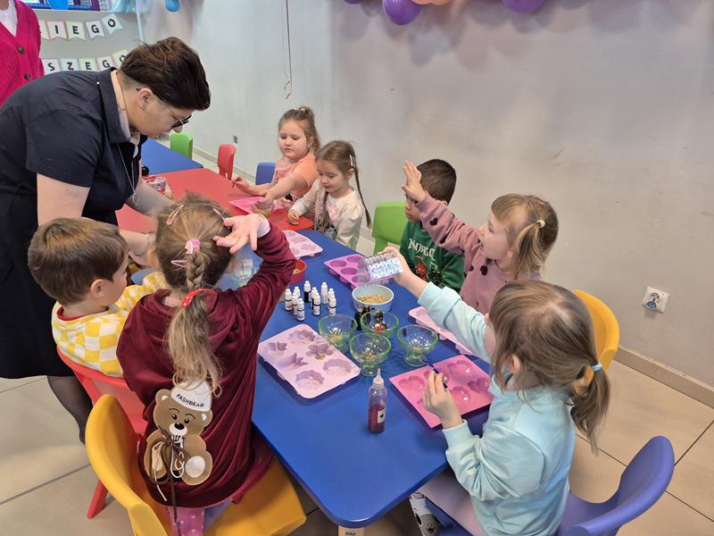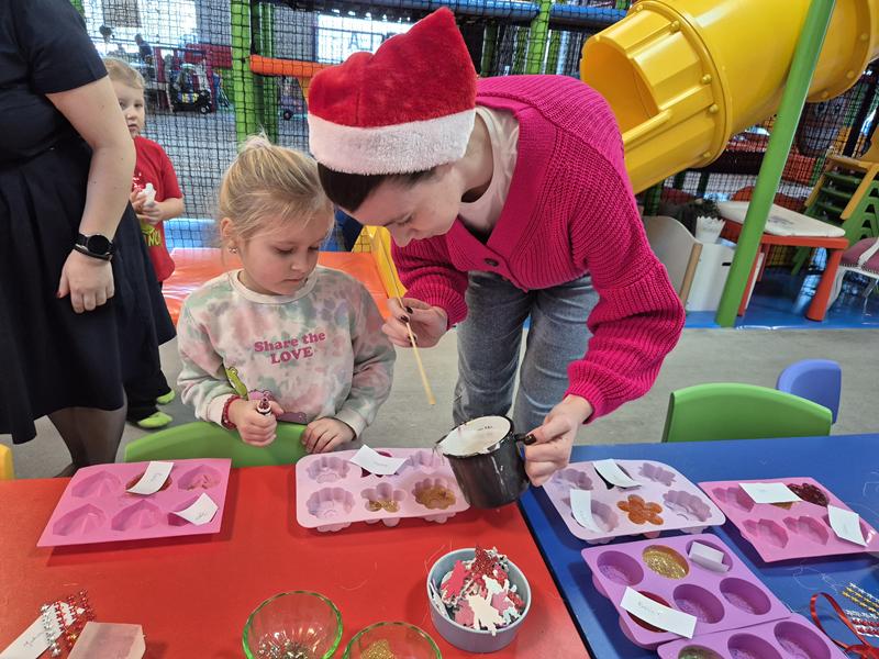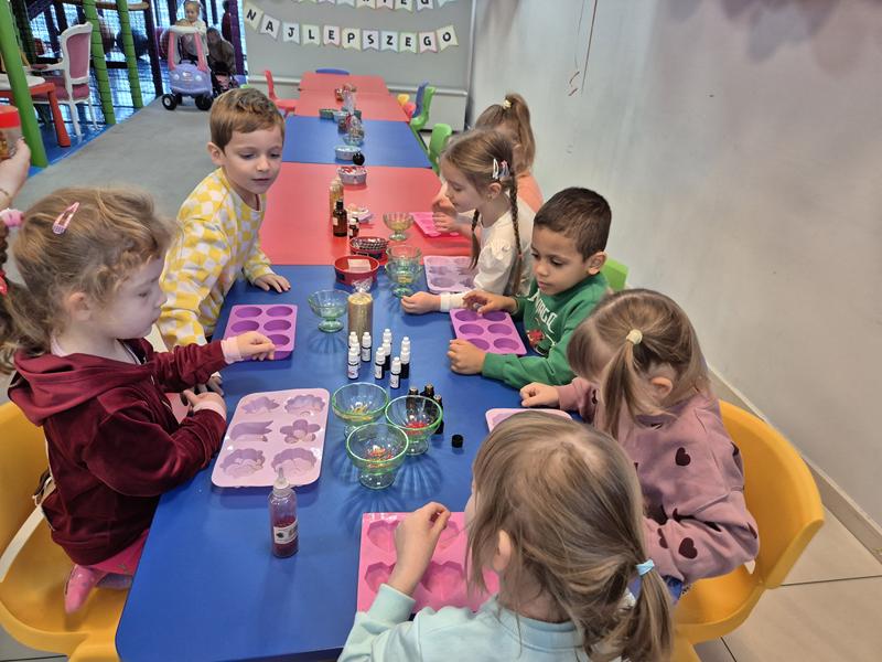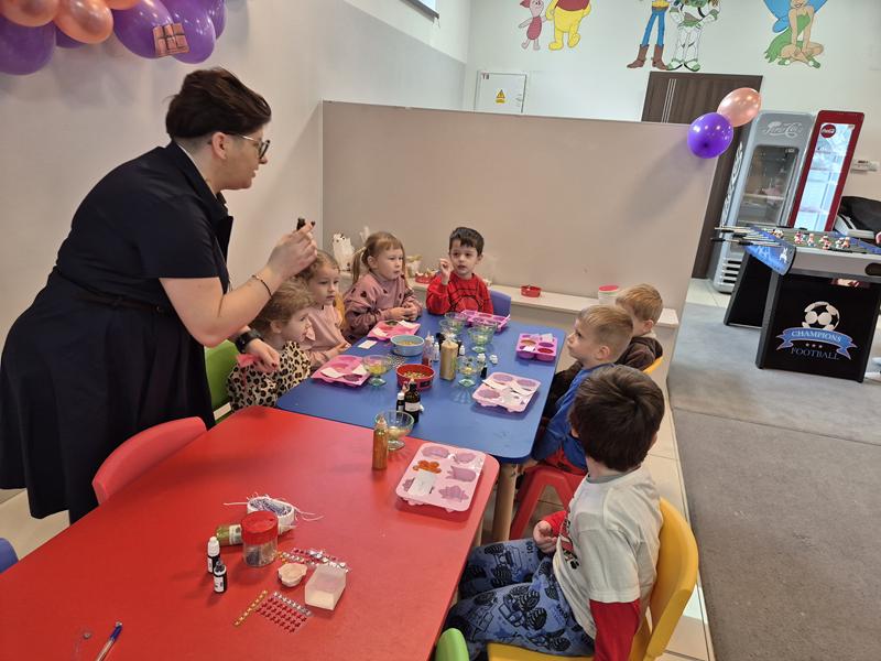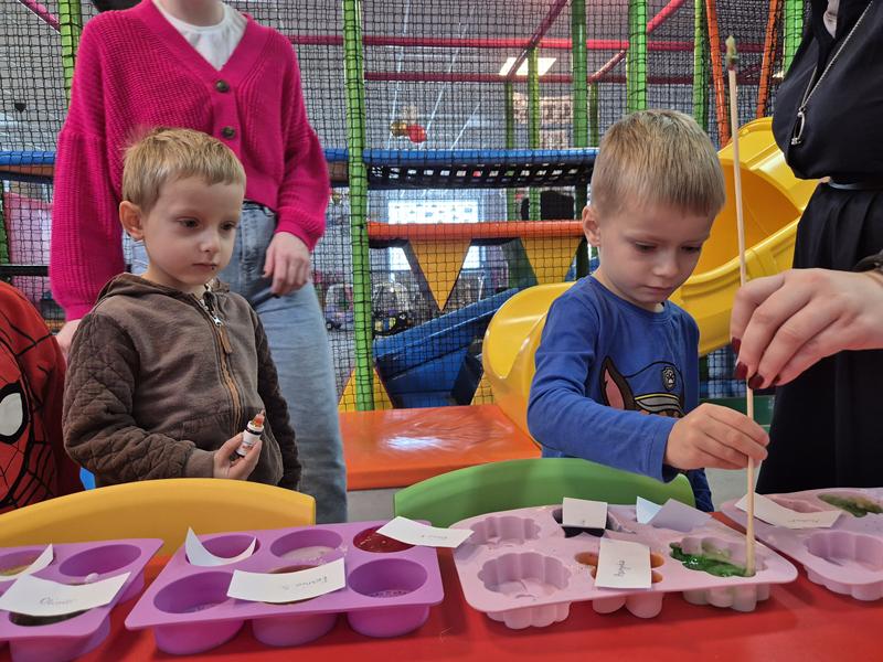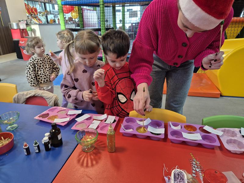 3 grudnia dzieci z grupy „Pszczółki” wybrały się na wycieczkę do Lalandii FUN PARKU w Barwałdzie Górnym. Wycieczkę sponsorowała Rada Rodziców, w ramach mikołajkowej atrakcji dla przedszkolaków. Pierwszą godzinę pobytu przedszkolaki spędziły w nowoczesnej sali zabaw. Po zapoznaniu się z zasadami bezpiecznej zabawy przedszkolaki zjeżdżały na zjeżdżalniach, skakały na trampolinie, bawiły się w basenach z kulkami, przechodziły tunelami, itp. Pszczółki miały również możliwość zabaw w „strefie maluszka”, gdzie do ich dyspozycji były klocki, domki, kuchenki, samochody. Po „szaleństwach” w sali zabaw przyszedł czas na warsztaty „Jak powstaje świeca zapachowa?” Dzieci poznały składniki, które są potrzebne do produkcji świeczek oraz różne rodzaje zapachów. Następnie pod opieką pań instruktorek przystąpiły do tworzenia świeczek. Każdy miał możliwość stworzyć swoją unikatową zapachową świeczkę – dodać do niej brokat i ulubiony zapach. Dzieci były bardzo zaciekawione i zaangażowane podczas zajęć.