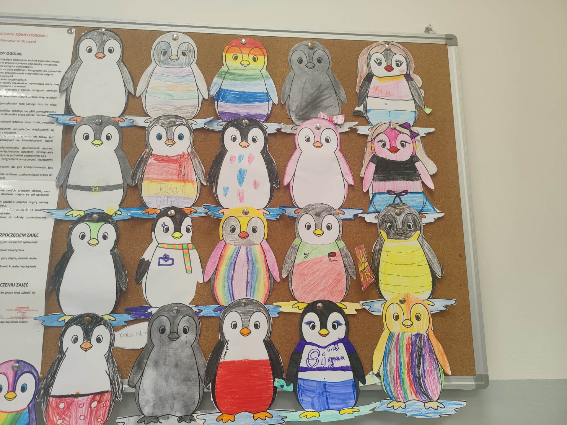Na zakończenie zajęć dzieci samodzielnie wykonały papierowe pingwinki, które następnie ozdobiły gazetkę świetlicową, przypominając wszystkim o potrzebie dbania o przyrodę i ochrony zagrożonych gatunków.