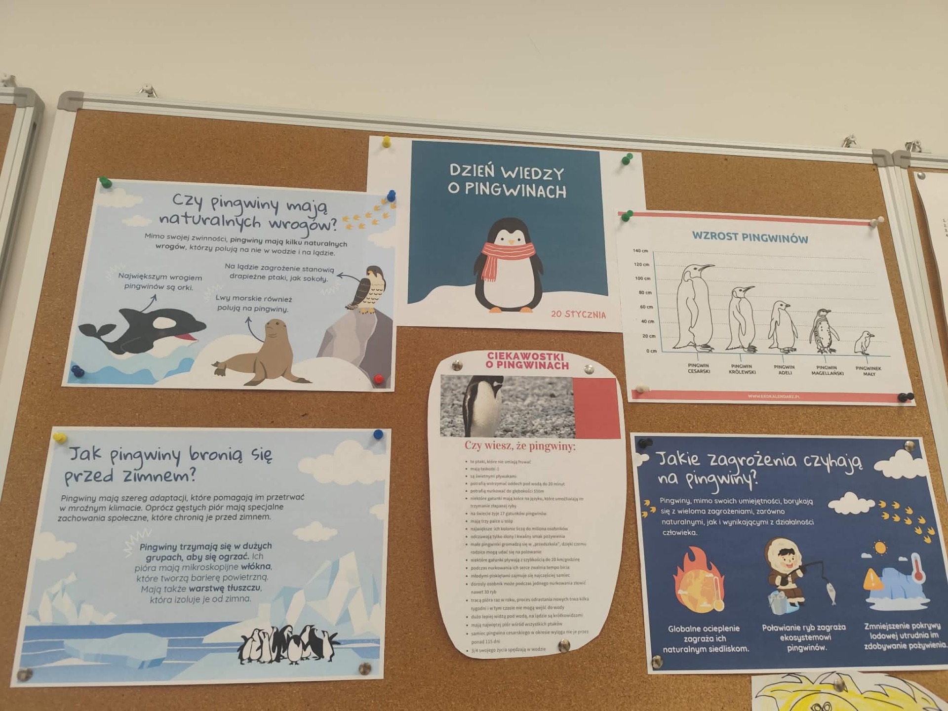 20 stycznia obchodzony jest Światowy Dzień Wiedzy o Pingwinach, którego celem jest poszerzanie świadomości uczniów na temat pingwinów jako gatunku zagrożonego wyginięciem, m.in. na skutek zmian klimatycznych, topnienia lodowców oraz zanieczyszczenia oceanów.