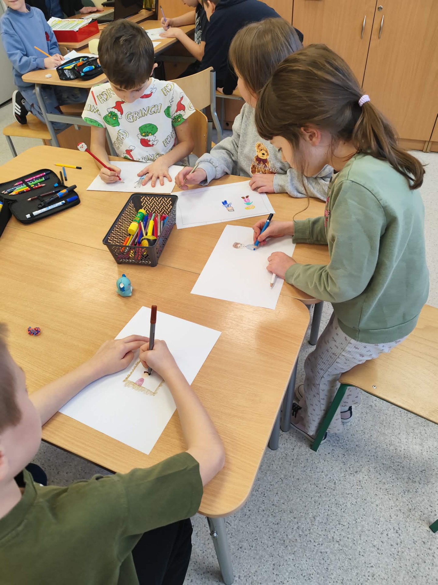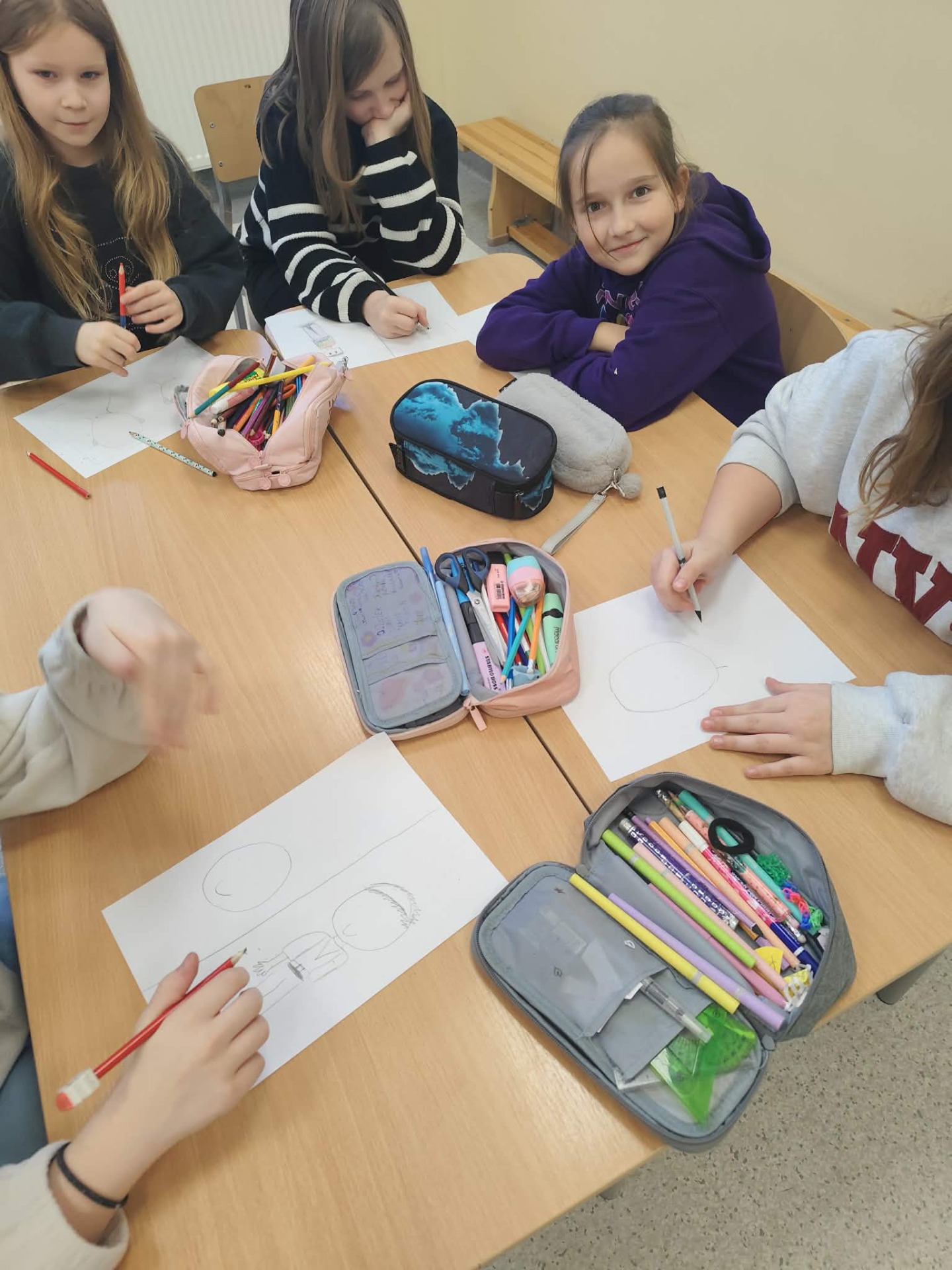 Z tej okazji w świetlicy szkolnej odbyły się zajęcia plastyczne, podczas których dzieci z dużym zaangażowaniem i radością rysowały portrety swoich Babć i Dziadków, wkładając w prace wiele serca i kreatywności.