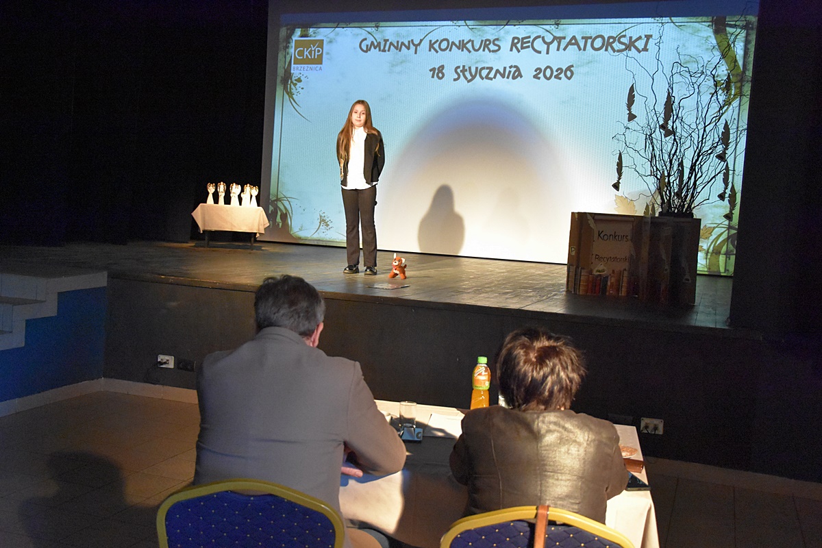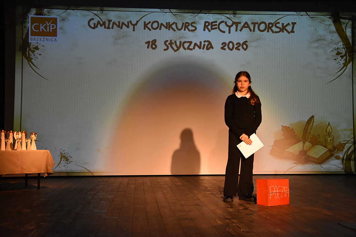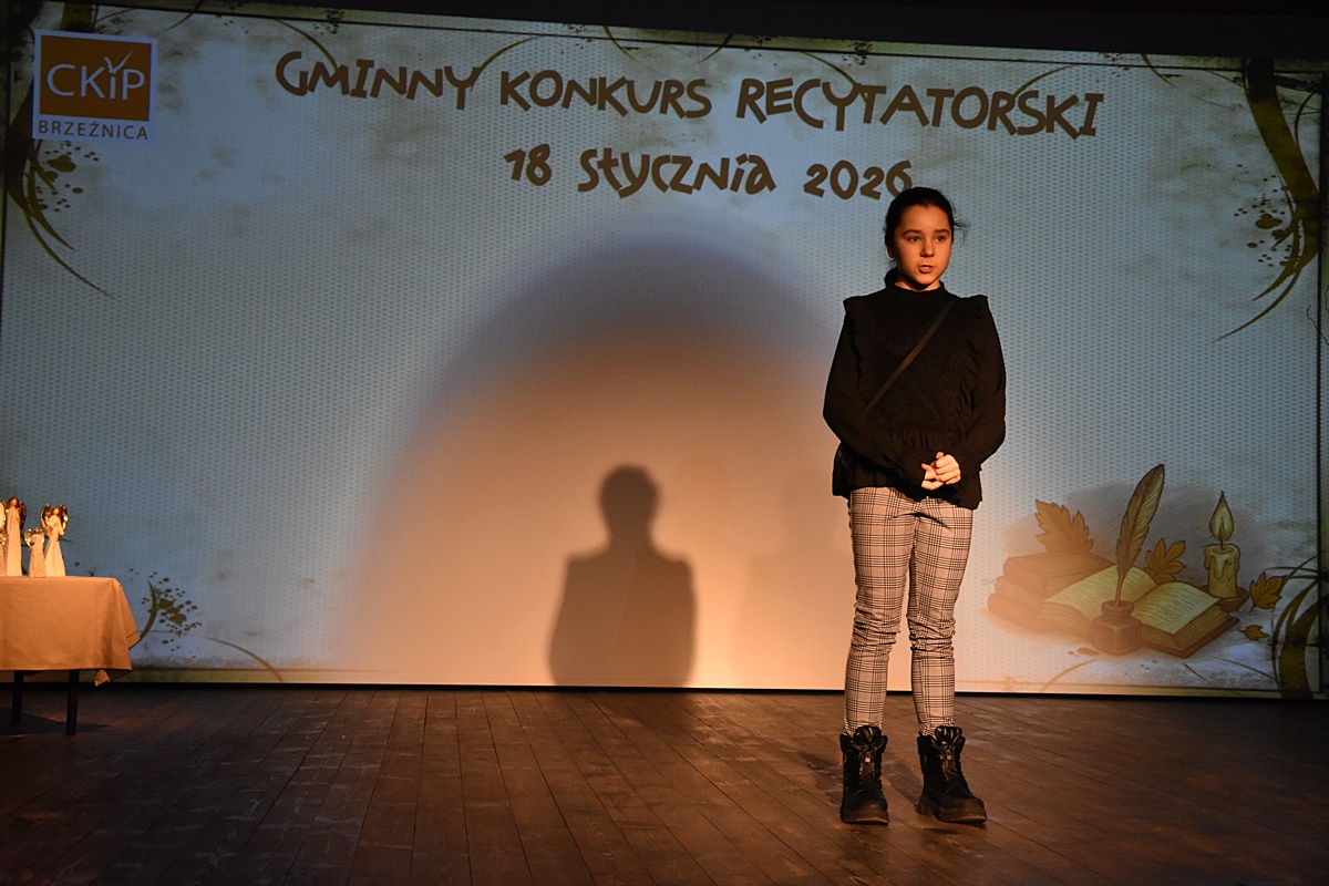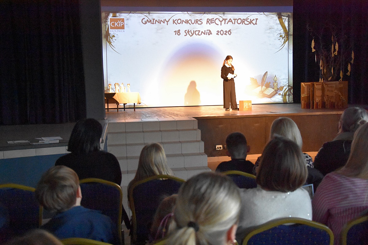 W niedzielę 18 stycznia 2026 roku uczennice Zespołu Szkolno-Przedszkolnego w Tłuczani wzięły udział w Gminnym Konkursie Recytatorskim organizowanym przez Centrum Kultury i Promocji w Brzeźnicy. Wydarzenie odbyło się w sali widowiskowej CKiP i zgromadziło młodych miłośników literatury z terenu gminy Brzeźnica.