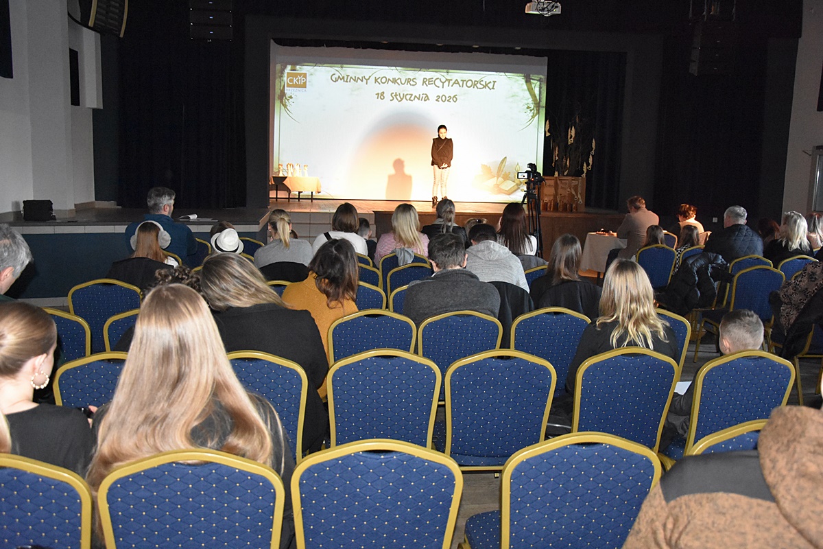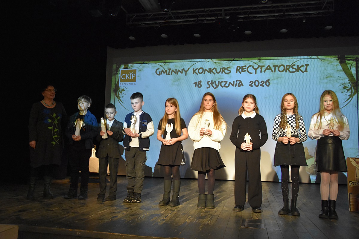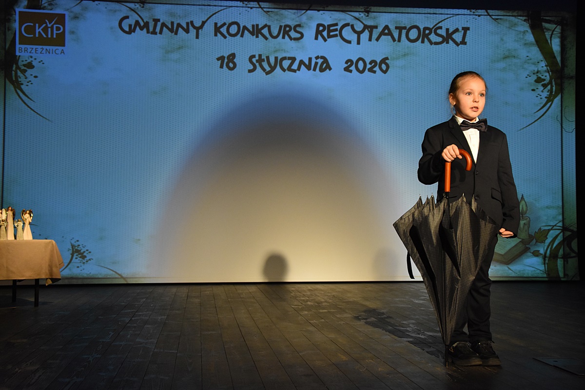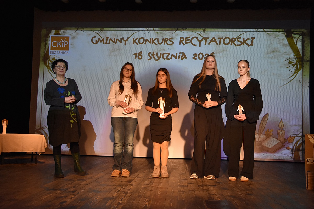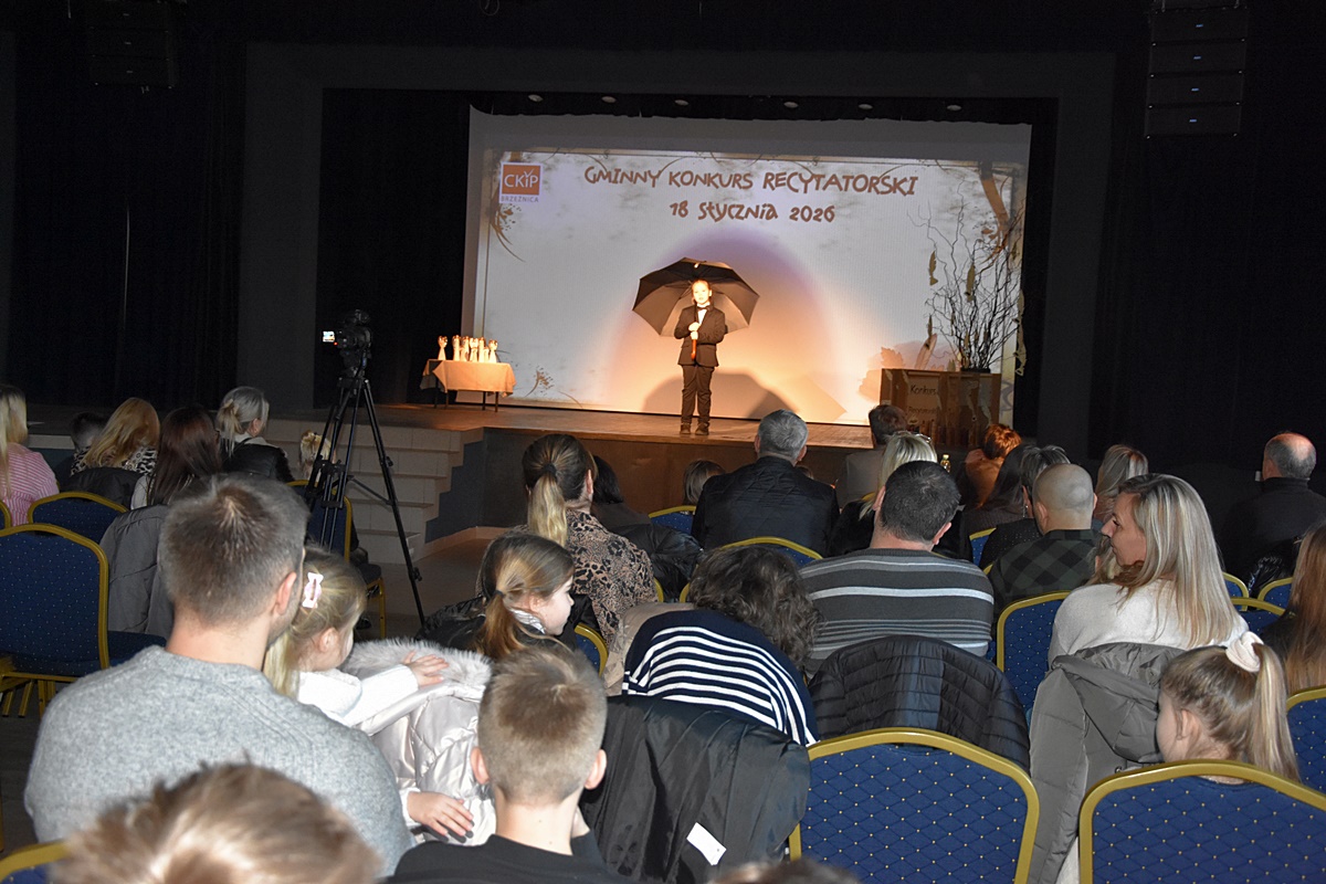 W niedzielę 18 stycznia 2026 roku uczennice Zespołu Szkolno-Przedszkolnego w Tłuczani wzięły udział w Gminnym Konkursie Recytatorskim organizowanym przez Centrum Kultury i Promocji w Brzeźnicy. Wydarzenie odbyło się w sali widowiskowej CKiP i zgromadziło młodych miłośników literatury z terenu gminy Brzeźnica.